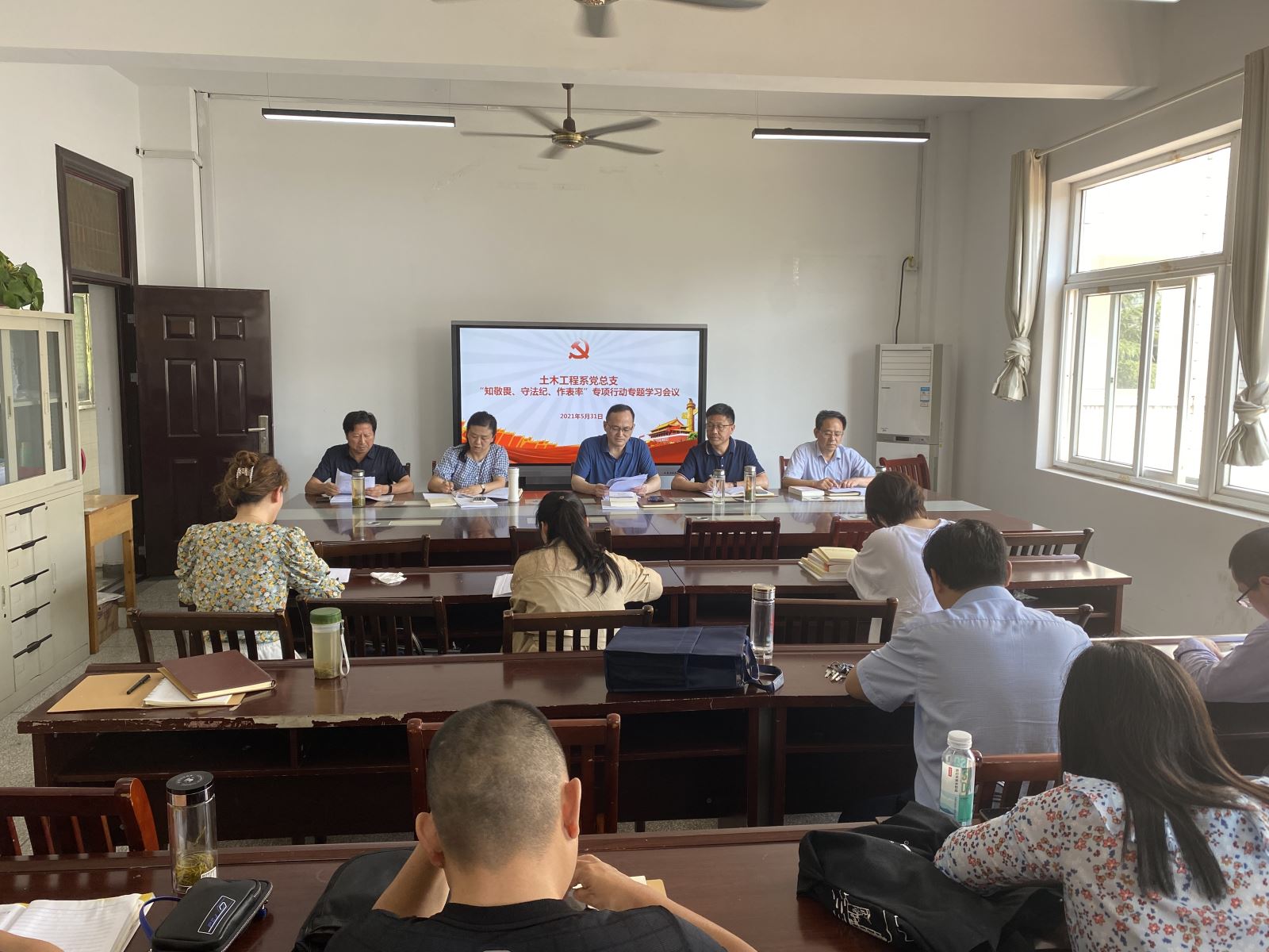 5月31日下午,土木工程系党总支召开“知敬畏、守法纪、作表率”专项行动专题学习会议。系党总支书记邹建华主持会议。土木工程系中心组学习成员、副科级以上干部、各党支部书记参会。