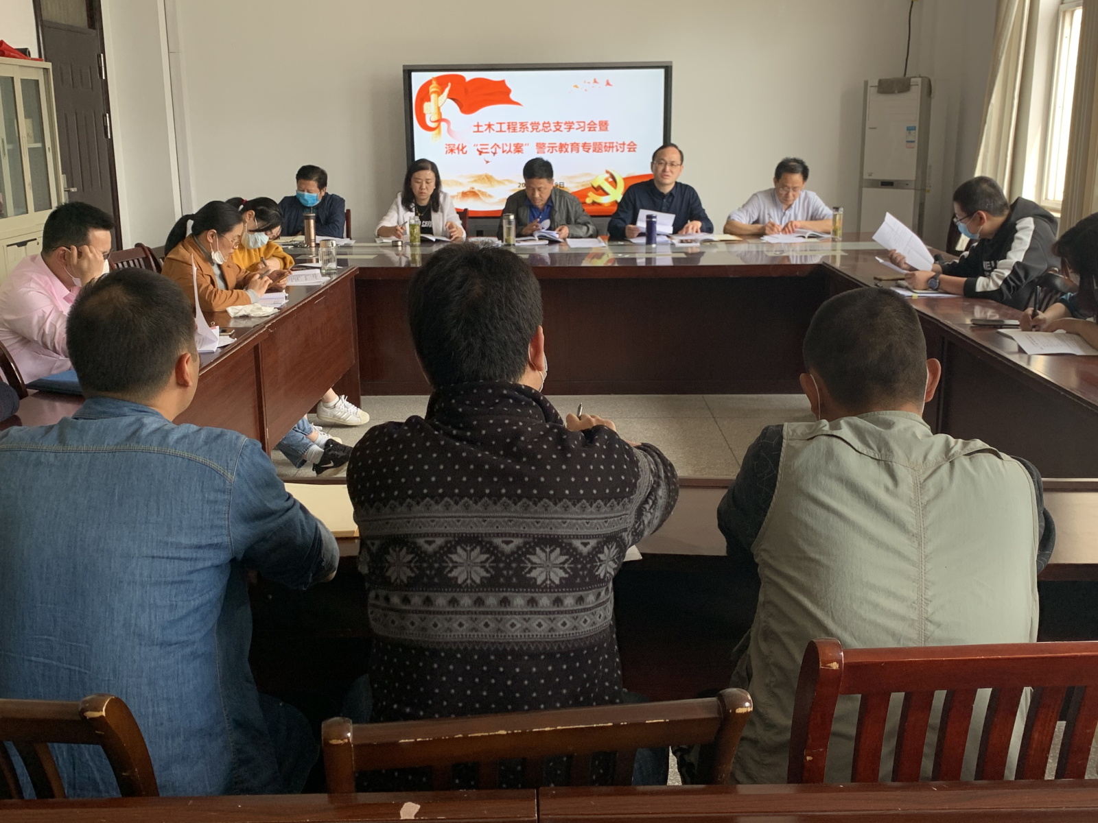 会上,邹建华和王常才分别领学了赵正永、张坚案和施平、阎如政、窦晓光严重违纪违法案例和《党组(党委)落实全面从严治党主体责任》《习近平总书记在十九届中央纪委第四次会议上的重要讲话精神》和《中国共产党党员教育管理工作条例》等相关内容。邹建华、王常才和支部书记代表等同志围绕“四联四增”“十查十做”内容,紧密联系赵正永、张坚案和施平、阎如政、窦晓光惨痛教训,结合自身思想和工作实际进行研讨发言,大家表示要以典型案例为镜鉴,严格对照检查,坚持问题导向,把自己摆进去、把职责摆进去,深入查摆自身存在的形式主义官僚主义,增强党员干部的纪律观念和规矩意识,将土木系各项工作推向新的高度。