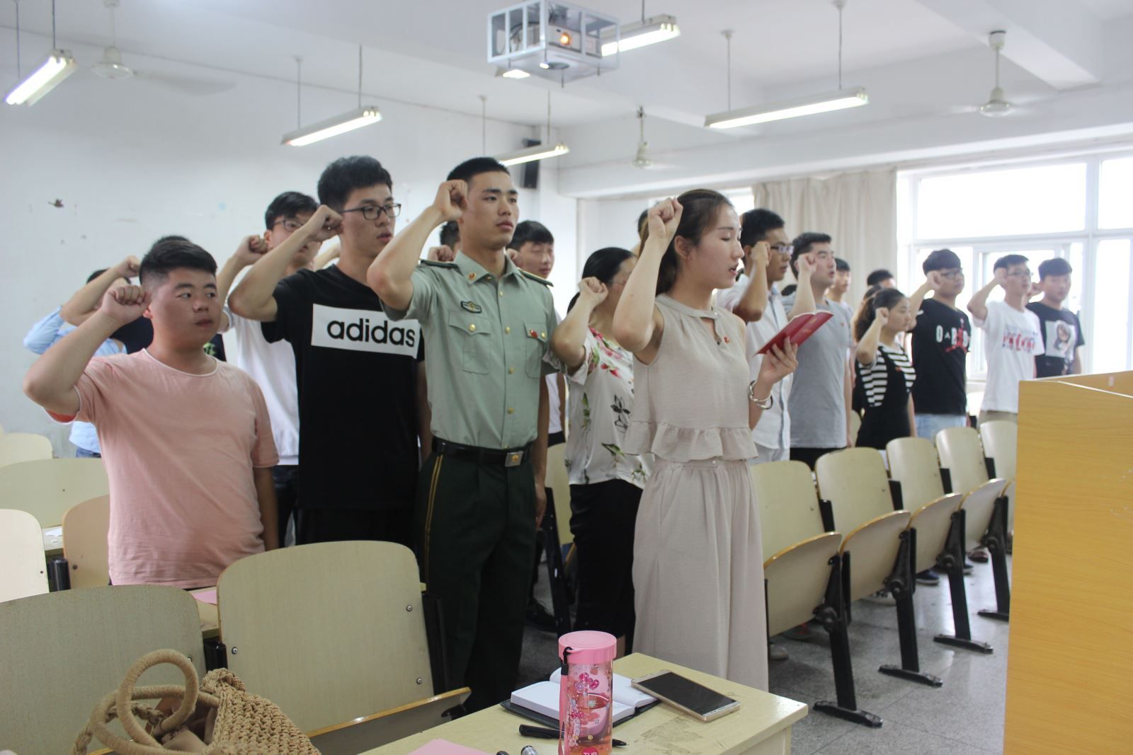 在重温党的誓词环节,同学们仿佛又回到了入党宣誓时令人激动的时刻,纷纷表示要践行党员承诺,不断增强党性修养,做讲政治、有信念,讲规矩、有纪律,讲道德、有品行,讲奉献、有作为的合格党员。
