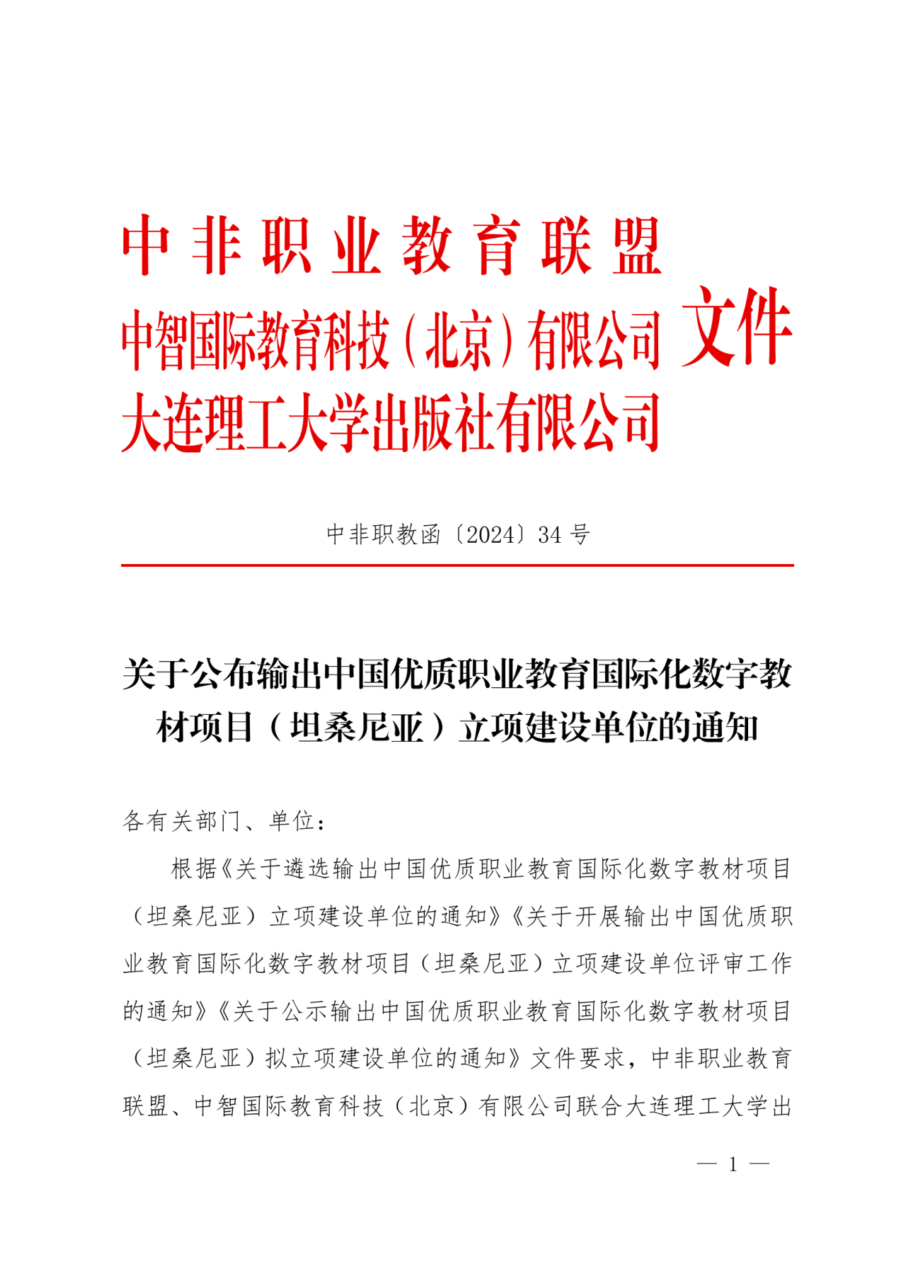 “输出中国优质职业教育国际化数字教材项目”是中非职业教育联盟为坦桑尼亚国家开发职业教育系列标准和资源项目的重要组成部分,项目遴选中国职业院校优质教学资源,开发符合中资企业国际产能合作需求和坦桑尼亚行业发展计划的国际化数字教材,由坦桑尼亚国家职业教育委员会和大连理工大学出版社共同出版,并上传至坦桑尼亚国家职业教育数字化资源管理平台,作为坦桑尼亚院校机构推荐指定书目推广使用。未来,将面向“一带一路”沿线各国进一步推广。