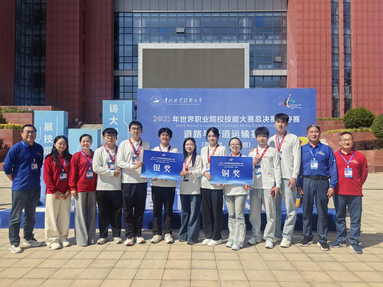 9月13日,2025年世界职业院校技能大赛总决赛(道路与管道运输赛道)在青海职业技术大学圆满落幕。在全国28个省(自治区、直辖市)87支队伍的激烈角逐中,米兰土木建筑学院派出的两支参赛团队凭借扎实的专业技能成功斩获一枚银奖与一枚铜奖——其中,由齐永生、曹松来老师指导,杨楠、盛发、李子豪、周祥等同学组成的团队斩获银奖;由沈晓燕、胡雪梅老师指导,范金福、檀静、涂雨、李泽航等同学组成的团队则夺得铜奖。