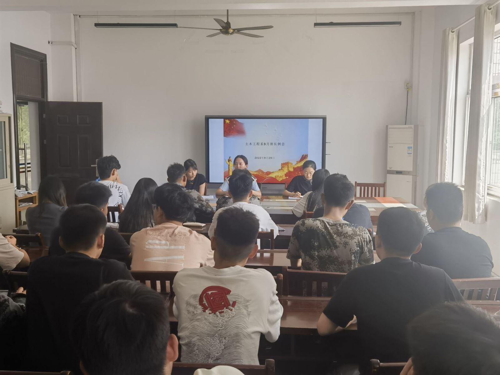 2022年9月29日中午12点,土木工程系在系会议室召开了国庆假期安全教育主题班长例会,系学管老师蒋凤娇、宣荣荣、张瑶以及21级班长、22级临时负责人参加。