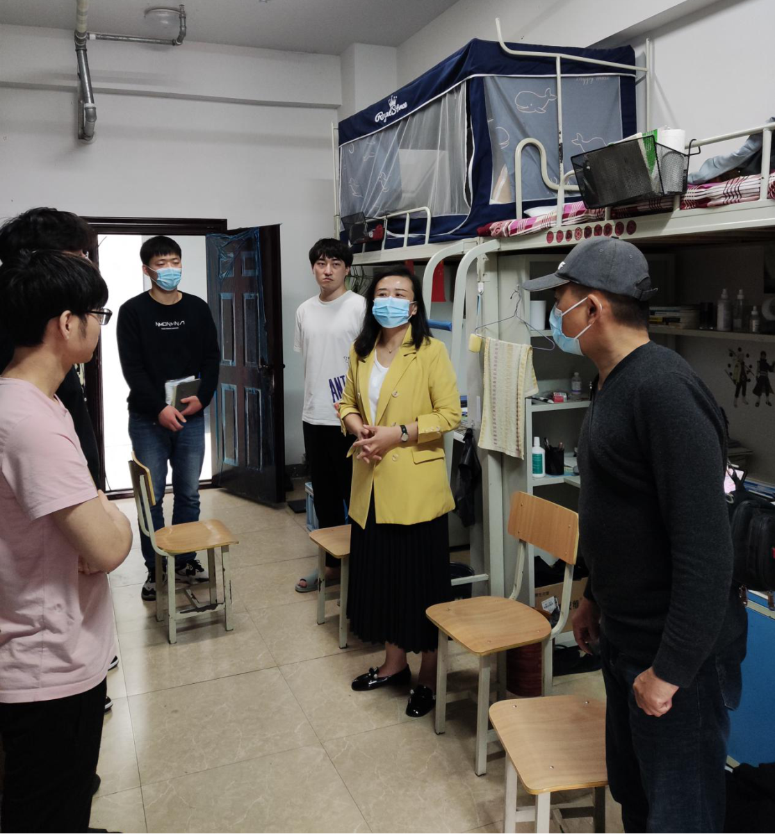4月20日下午3时,在7栋101宿舍,6名学生欢迎各位领导老师的到来。朱蓉首先介绍了当前疫情防控形势,她指出,由于合肥出现5例新冠阳性,局势紧张,希望同学们认识到问题的严重性,及时反馈有关情况,协助院系抓严抓实疫情防控的相关工作。在疫情防控管理期间,由于封闭时间较长,同学们在生活和学习上可能会遇到一些问题,要及时保持与辅导员的紧密联系,必要时可直接与系领导反映,确保在校期间各项安全。平时要注意加强宿舍卫生管理,窗户通风、勤洗衣物,在备考专升本的冲刺阶段,增强肉蛋奶的摄入,加强体质锻炼。