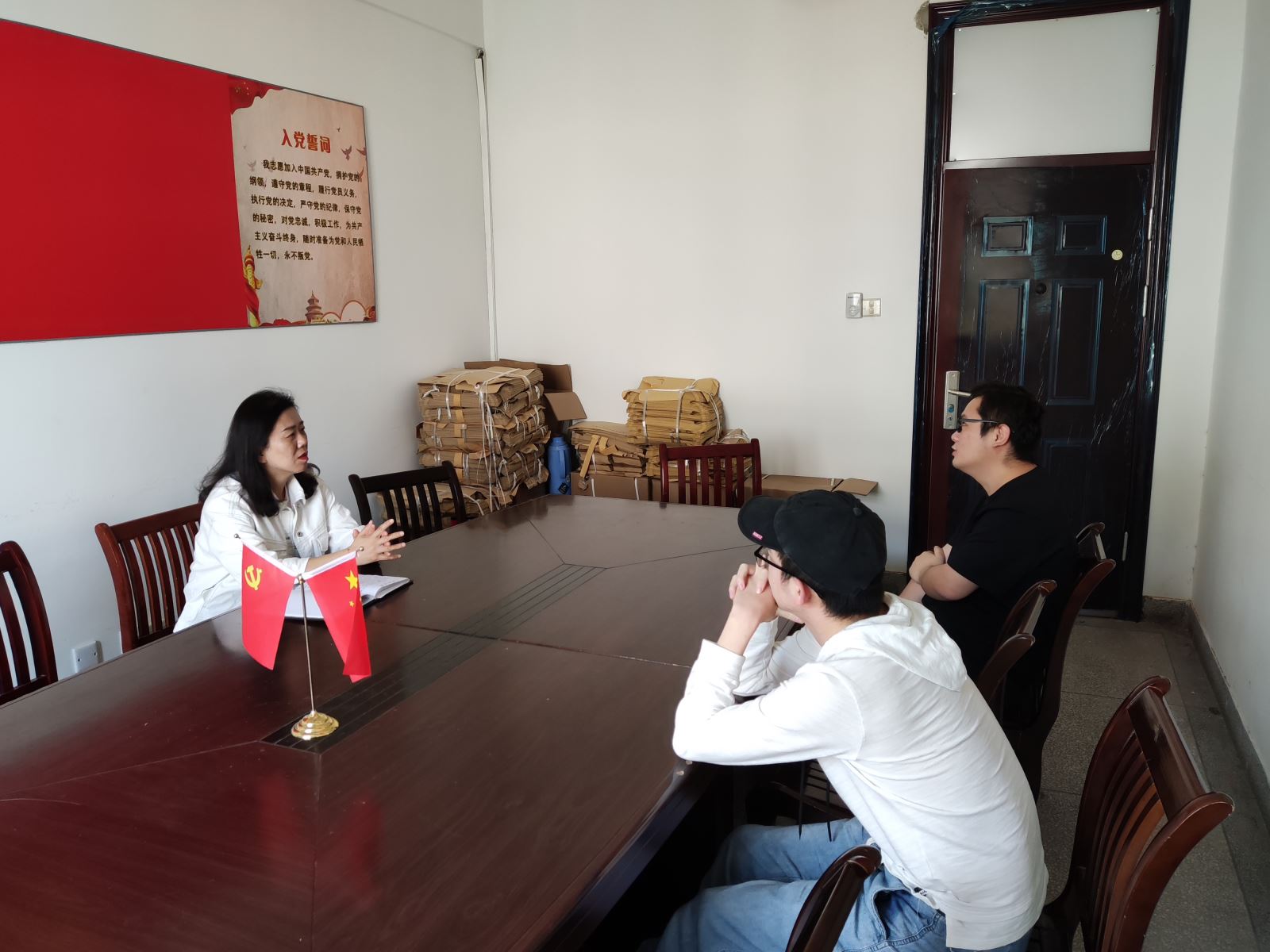 朱蓉指出,在接到你二人的诉求时,系领导很重视,已经第一时间向负责领导咨询反馈,当前助学金等正在办理。她还介绍了当前学院疫情防控政策,强调同学配合疫情防控工作,积极备考。她还强调,在专升本最后的冲刺阶段,要注重营养,加强锻炼,如有任何学习与生活上的需要,要及时反馈。