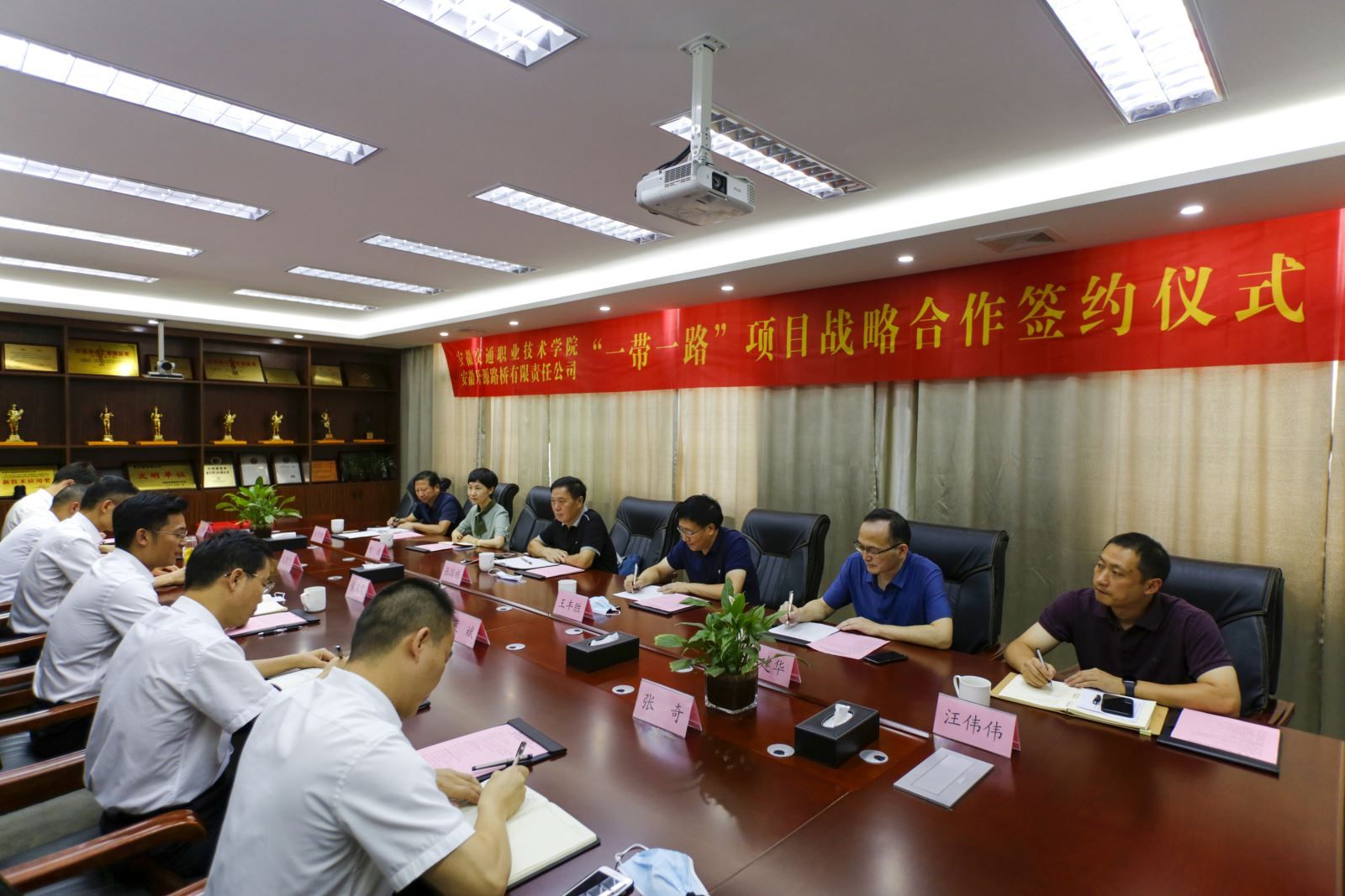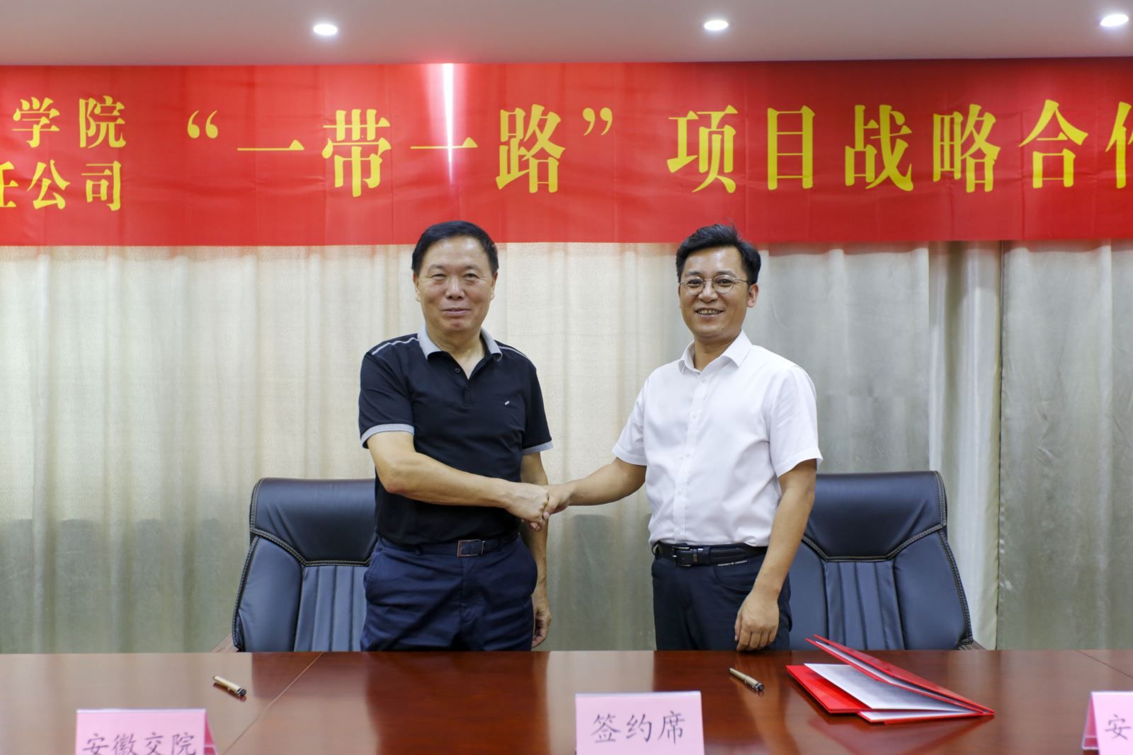8月17日,学院与安徽开源路桥有限责任公司签署“一带一路”项目战略合作协议。院长张国栋、副院长王丰胜、学生处、土木系领导,安徽开源路桥有限责任公司党委书记、董事长黄风雷、党委副书记、工会主席支晓飞、党委委员、副总经理、总工程师袁斌及相关部门负责人出席签约仪式。