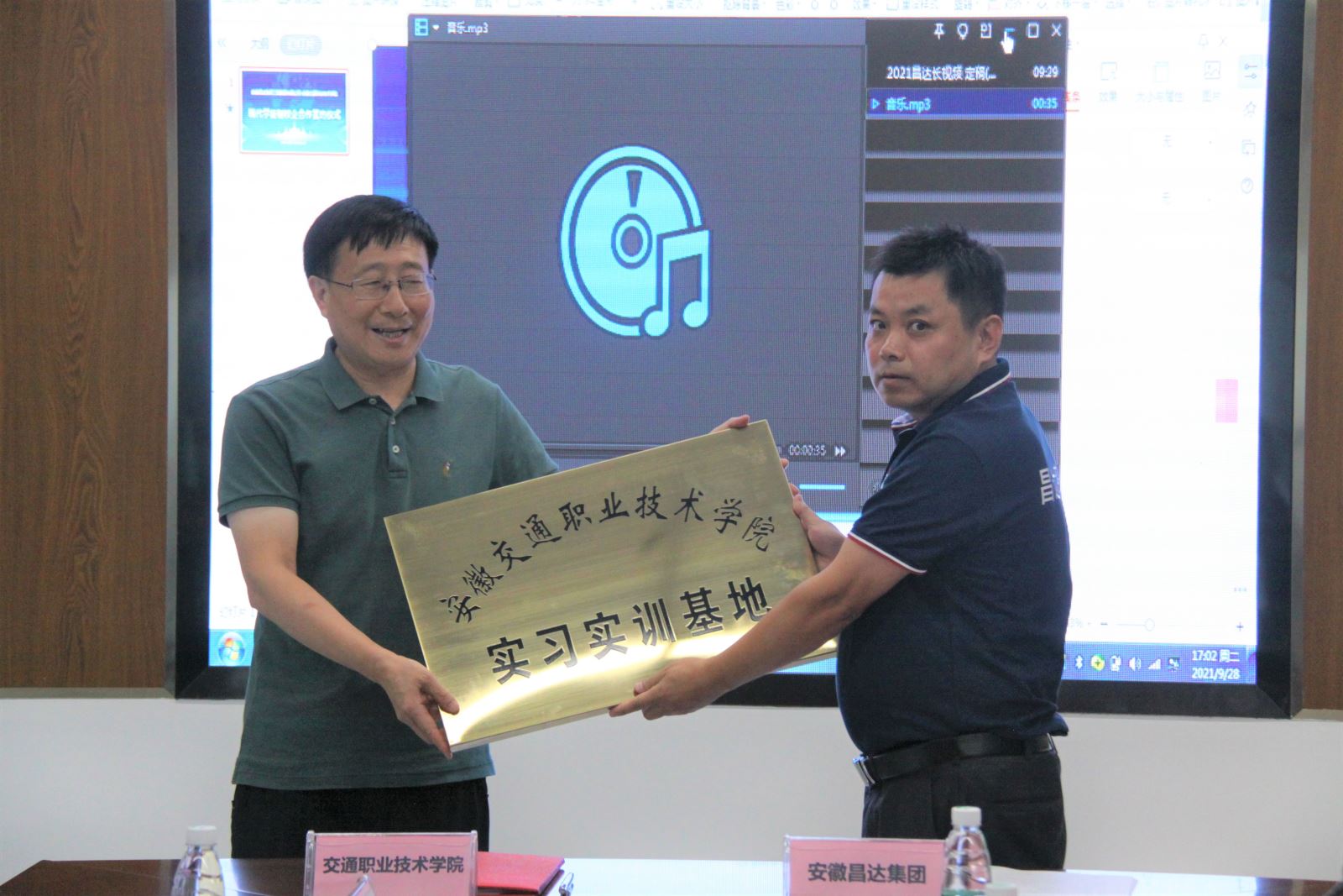 王丰胜代表学院授予安徽昌达路桥工程集团有限公司“米兰milan官方网站实习实训基地”铜牌。