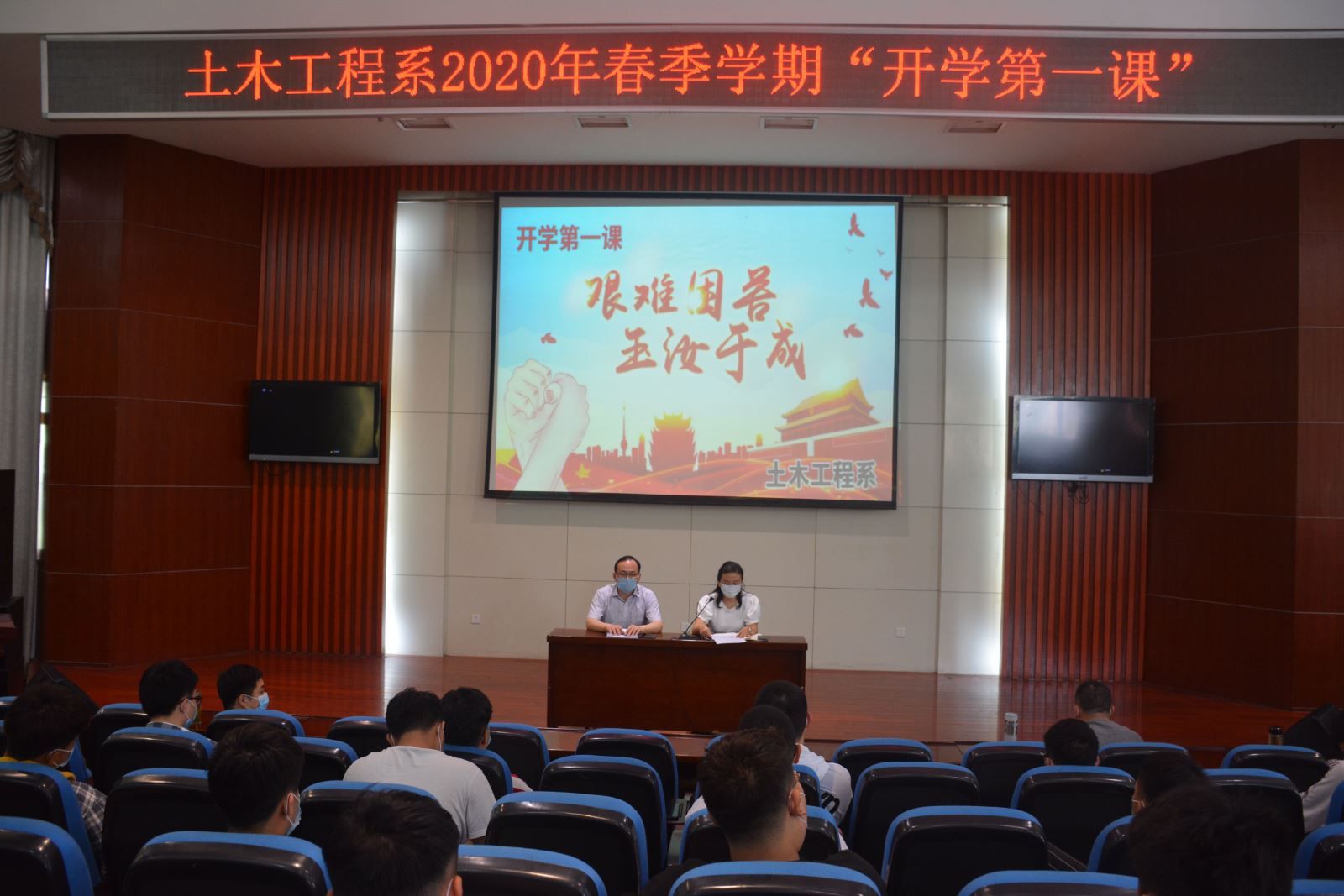 5月20日上午,春季学期学生返校复学第一天,土木工程系党总支书记邹建华在多功能报告厅主讲 “开学第一课”,19级返校的12个班级辅导员,各班班长、团支书、寝室长参加了听课,活动由系党总书记副书记朱蓉主持。