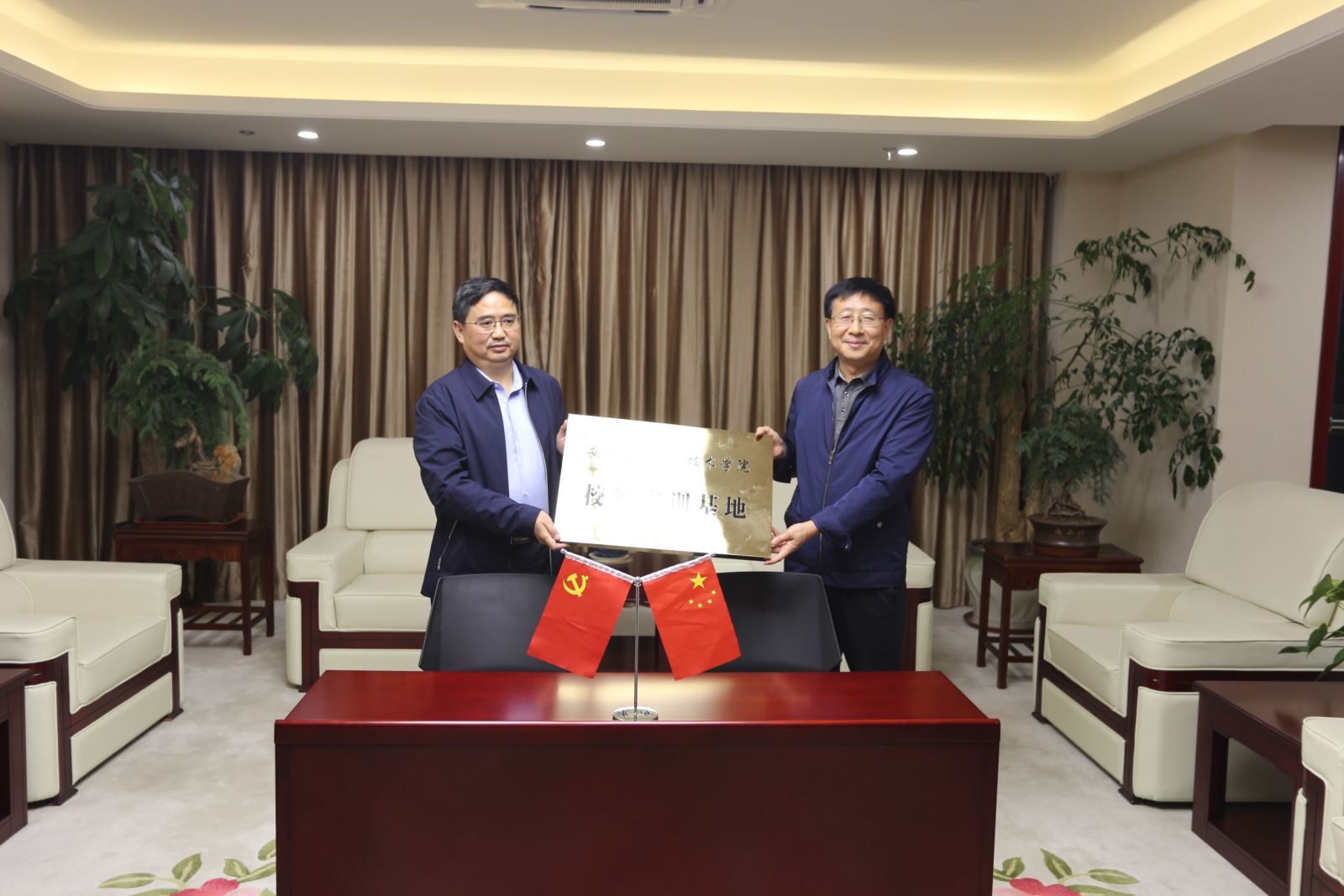 张国栋与欧阳志宜共同签署现代学徒制班校企合作协议,王丰胜代表学院授予路桥集团“实习实训基地”铜牌。