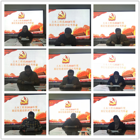 系党总支书记邹建华主持会议。会上,道路与铁道工程教研室党支部、桥梁与隧道工程教研室党支部、市政工程与道路养护教研室党支部、土木工程检测教研室党支部、工程造价教研室党支部、安全技术与工程监理教研室党支部、港航与建筑工程教研室党支部、实验实训中心党支部和学生党支部9位书记分别从“政治理论学习情况”、“抓党的建设工作推进情况”、“突出抓基层党建和党风廉政建设工作情况”、“意识形态工作情况”、“履行工作责任情况”五部分作现场述职。述职结束后,9位书记全部接受了现场测评打分。