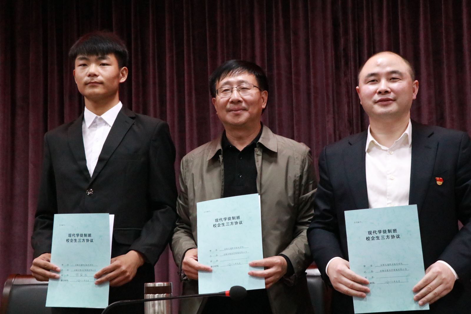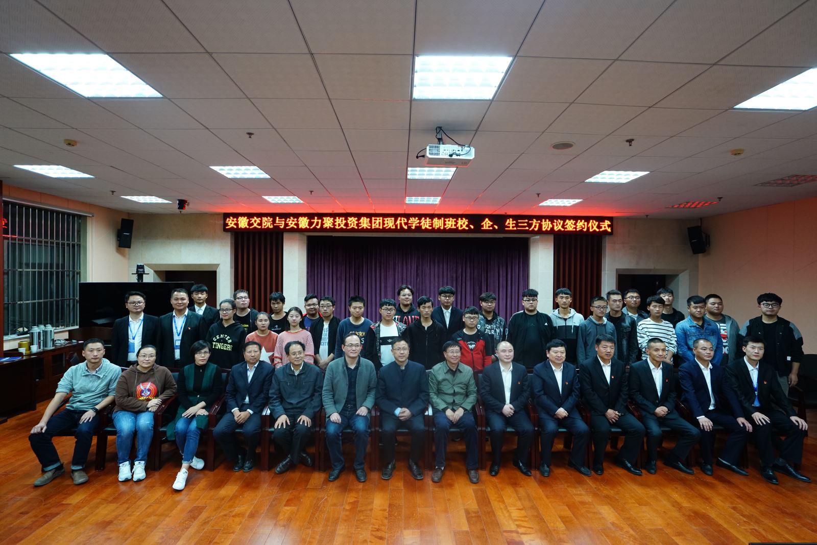 学院王丰胜副院长、安徽力聚集团宋执寿董事长和米兰18级安徽力聚班的学生共同签订了“校、企、生”三方就业协议。