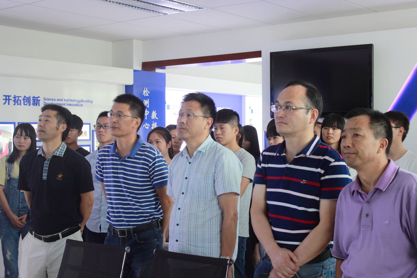 下午两点,王主任和邹书记一行人来到安徽公路检测中心的电教室,安徽检测中心徐继欣副主任首先介绍了安徽检测中心的近年来发展历程及经营现状,组织师生观看了中心的介绍宣传短片,作为全国25家、安徽省唯一一家交通行业全国科普基地,中心拥有多项全国独家检测技术专利。接着徐主任详细介绍了全省劳模、安徽公路检测中心主任沈训龙同志组建的劳模创新工作室的科研项目建设情况,并带领大家参观了劳模创新工作室及中心信息集成展示平台。技术人员向大家介绍展示了安徽省桥梁网级运行监测平台对多座桥梁的实时监测情况。