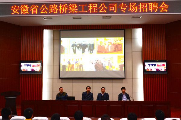 11月16日下午,安徽省公路桥梁工程公司来院召开专场招聘会,计划招聘路桥、安全、工程机械、物流等专业20名毕业生,来自土木、汽机、管理系的300多名毕业生参加招聘会。
