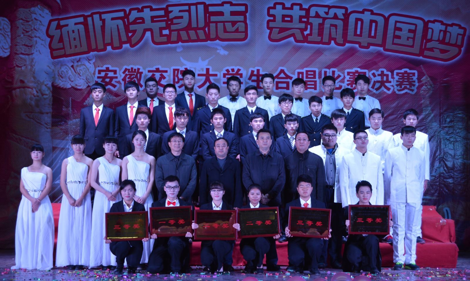 11月25日下午3:00,“缅怀先烈志,共筑中国梦”纪念抗日战争胜利70周年大合唱比赛在院南区大礼堂隆重举行院党委副书记(主持党委工作)孙顺利、党委副书记、纪委书记陈明、副院长王丰胜、李亮等领导亲临比赛现场。比赛特邀中国音乐家协会会员、安徽省合唱协会副主席、安徽艺术职业技术学院音乐教授吴小舟,安徽广播电视台音乐广播策划部主任锐红,合肥师范学院音乐系龙飞担任评委。