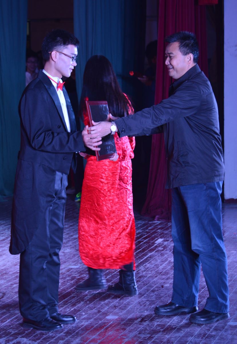 比赛以教师合唱团的《太行山上》拉开帷幕,各系学生合唱队通过精心准备,情绪饱满,艺术品位较高;土木工程系以两首风格迥然不同的歌曲:旋律激昂、雄壮的《地道战》和旋律舒缓,饱含情感的《松花江上》将全场的气氛推至高潮,并凭借高超的演唱水平以9.85分的好成绩荣获一等奖,院党委孙书记为我系代表颁奖(下图)。