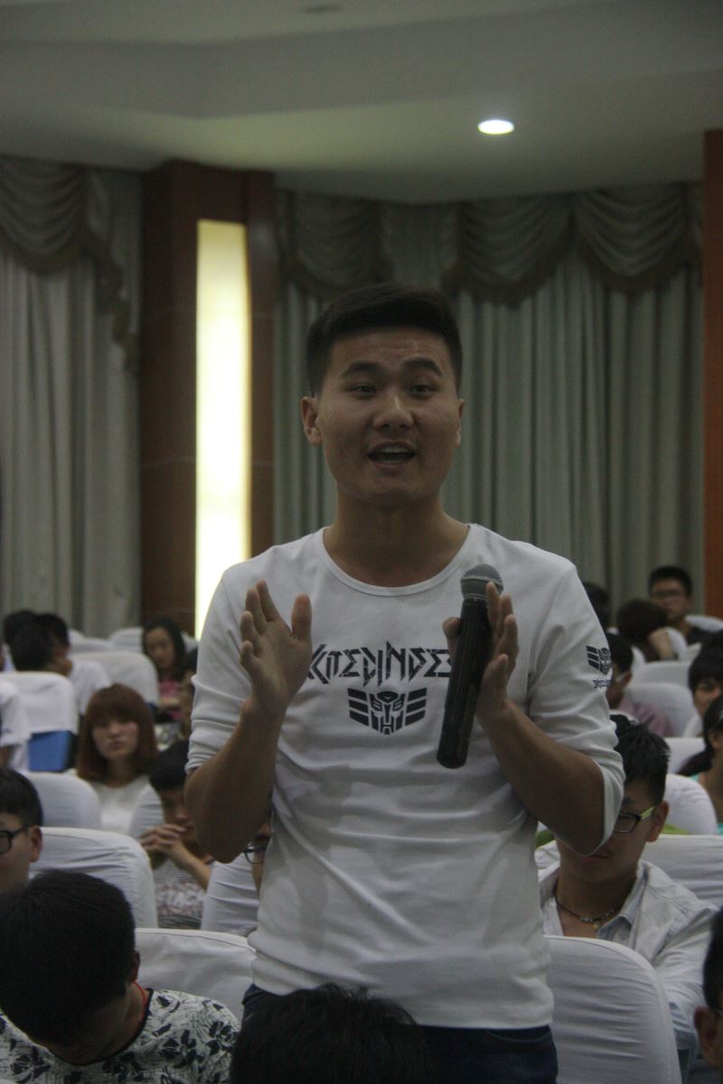 在与现场同学互动时,针对同学的提问,王总都做了详细的回答,14市政的班长肖雪梅提出了所有女生都关心的“女生如何在在土木类工作中取得更好的发展”。对于她的提问王总回答道,“土木的行业性质的不同决定女性的弱势,但是仍应抓住机遇,发挥自我所长,女生也可以更优秀”。土木系团总支吕中国老师也代他培养出的土木学子问道,怎样看待如今工作中的屡屡跳槽现象,王总回应,“要处理好理想和现实的矛盾,从基层做起,明确目标,坚定方向,从长远的角度看问题。”