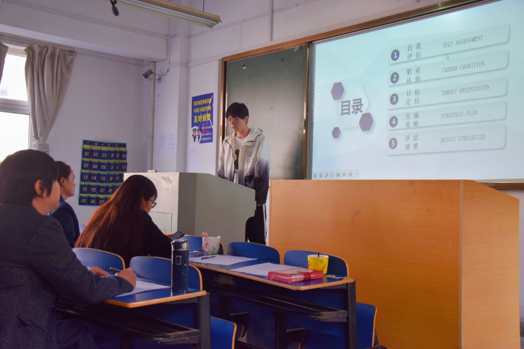 经过初赛的认真选拔,最终有16名选手脱颖而出,进入决赛。决赛分为主题陈述和现场问答两个环节进行。主题陈述中选手结合PPT演示文稿,对职业目标进行了全面的分析,提出了自己的行动计划和已取得的成绩,展示了自己的发展潜力等。最后评委根据选手阐述进行现场提问,对选手综合表现进行打分。评委们对学生职业规划中涉及的专业问题,给出了详细的解答并对他们的规划提出了合理的建议。