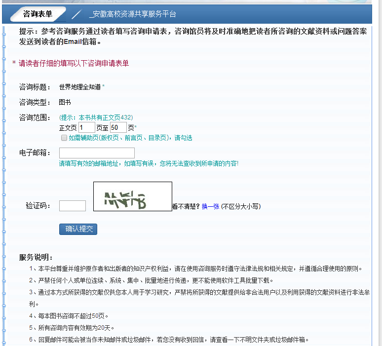 文献传递:可按照读者的咨询请求,通过E-mail的方式在最短时间内提供任意文献不超过全文内容20%的任何局部资料。传递的文献支持打印、转换成PDF/文本格式等功能。
