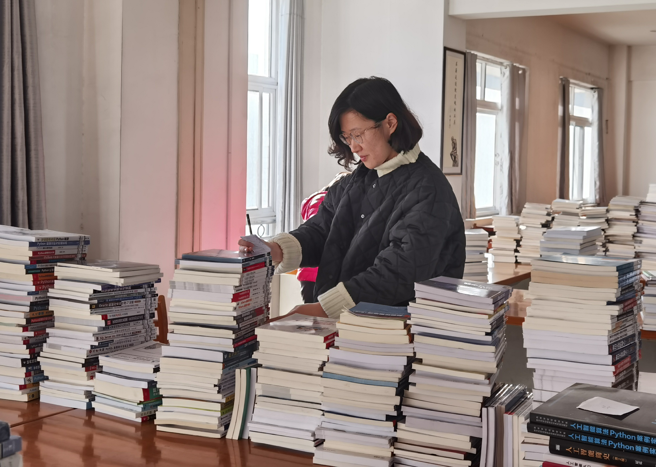 整个新书入藏、旧书调库工作持续近一个月。在此期间,馆领导深入一线,协调指挥,把控总体进度;图书馆各馆员各司其职,任劳任怨,加班加点,短时间内完成了总计3万余册图书的加工、编目、调拨、上架、移库工作。