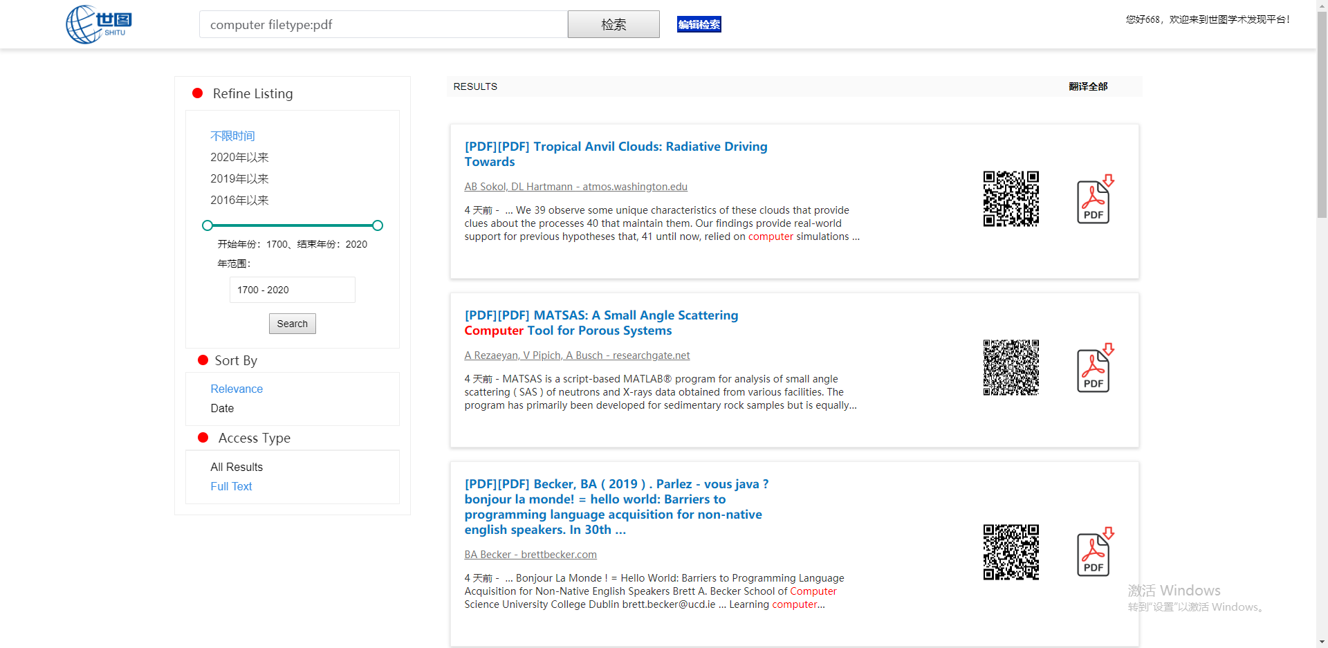 平台可提供全球学术资源的一站式检索和部分学术资源的下载服务,极大地节省师生的宝贵时间。既能扩充师生的文献查询渠道及广度,又能通过数据匹配有效的提高图书馆已购中、外文数据库的使用量。