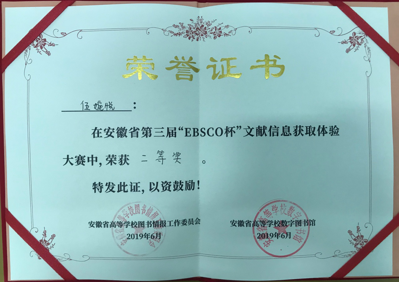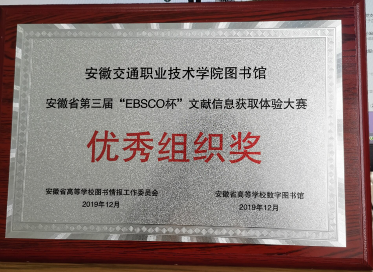 第3届“EBSCO杯”文献信息获取体验大赛于今年4月启动,6月底结束,面向全省本科高校学生及职业院校师生。全省50多所高校图书馆热情参与,共有5600多名同学参加了比赛。经过激烈的角逐,米兰城市轨道交通与信息工程系17级学生伍婉悦获得二等奖,米兰图书馆获得大赛优秀组织奖。