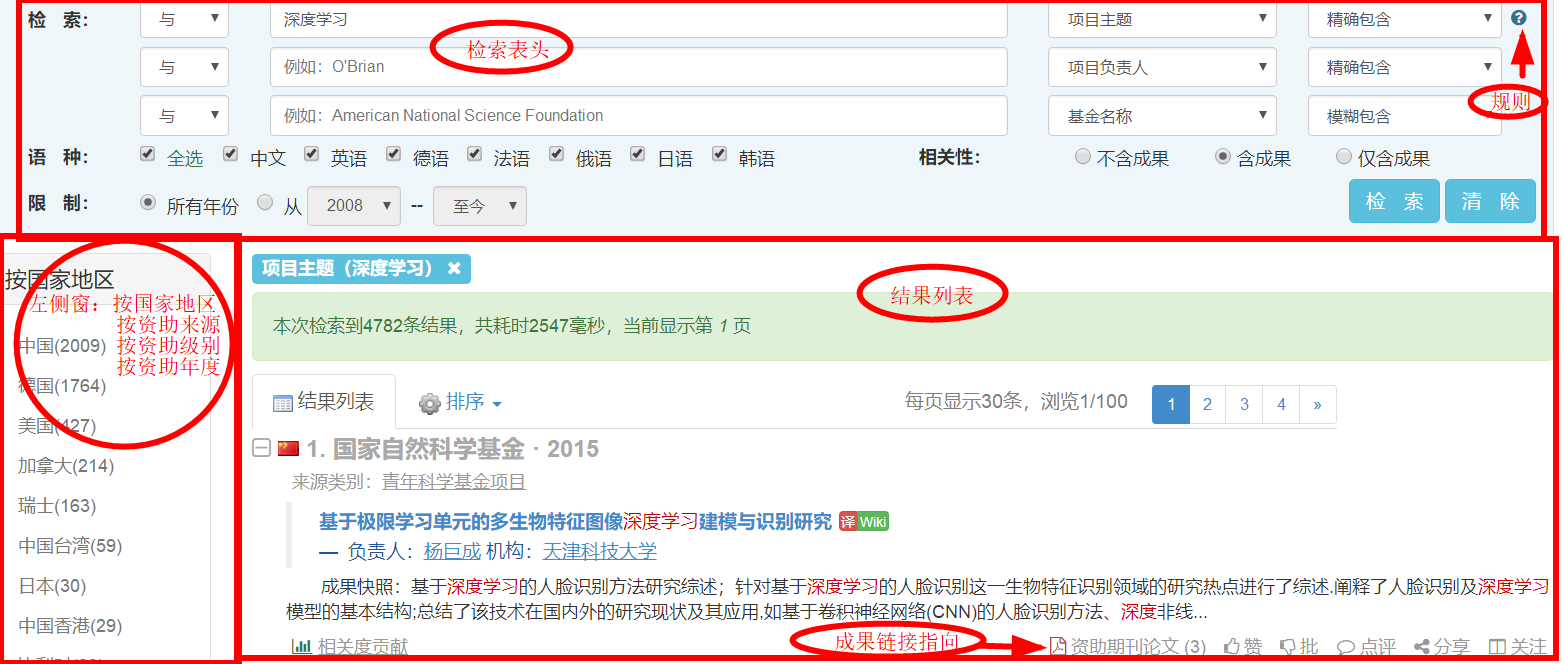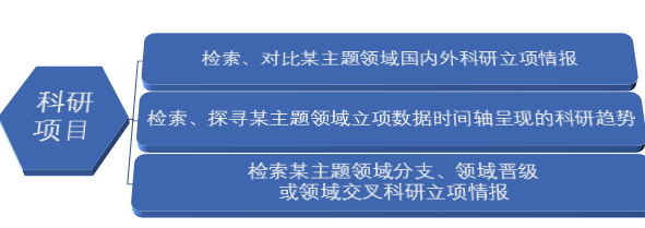1、 检索某主题领域项目及项目成果,了解科研项目国际前瞻动态,有效借鉴,二次创新,争取国内立项机会。
