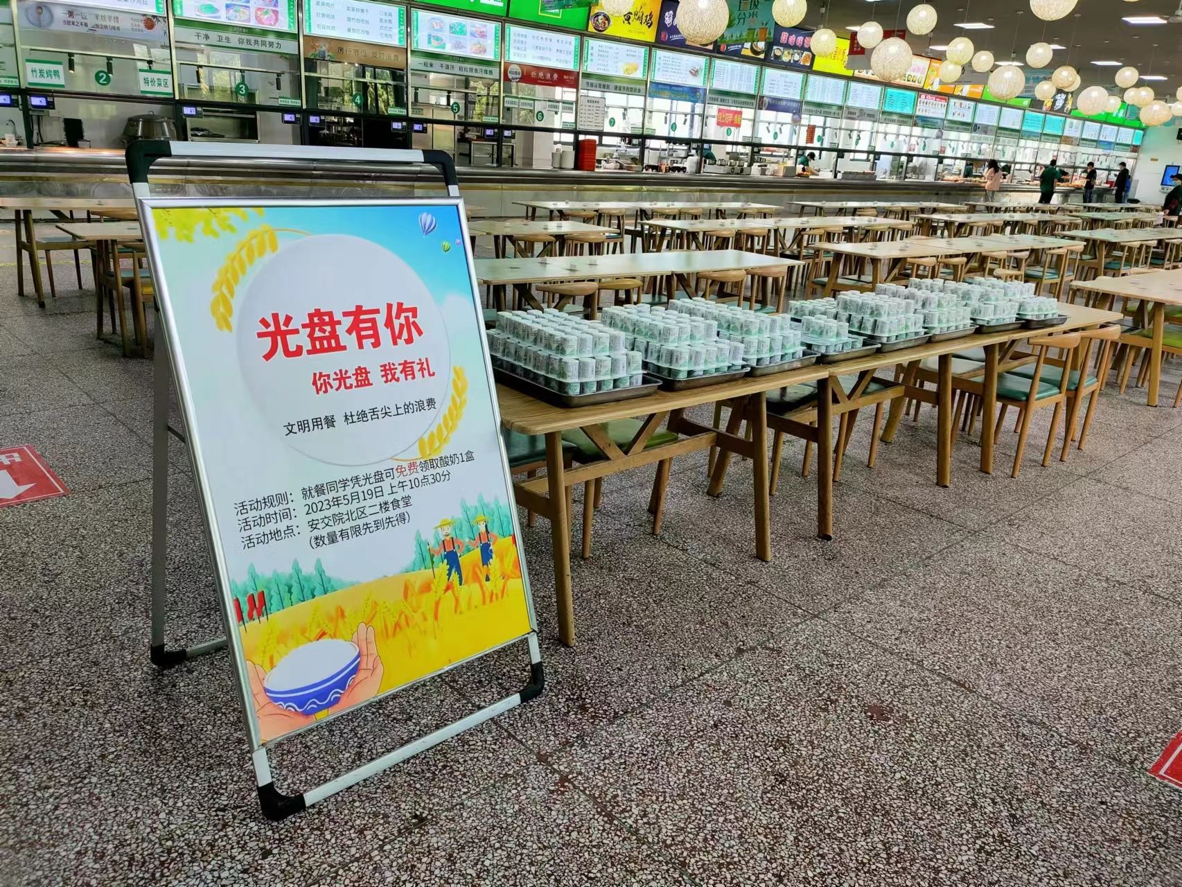 学院后勤部门积极整合后勤育人资源,积极探索服务育人新模式、新方法。在工作中,后勤部门发现学生就餐时菜品米饭剩余较多,餐饮浪费现象时有发生。而既往实施的教育引导往往停留在张贴海报等宣传层面,缺乏行之有效的约束机制和奖惩措施,无法从根本上解决餐饮浪费现象。通过积极调研,后勤部门决定采取“引导加奖励”的双重方式解决问题。通过在学生及教工食堂推行半份菜、小份菜,要求食堂工作人员在盛餐时引导师生合理购餐,保证营养均衡的同时,有效引导减少浪费。此外还面向全校师生开展了“光盘换水果”活动,师生用餐结束后将“光盘”放至餐盘回收处,即可到指定窗口领取餐后水果一份,以表达对节约粮食行为的鼓励。