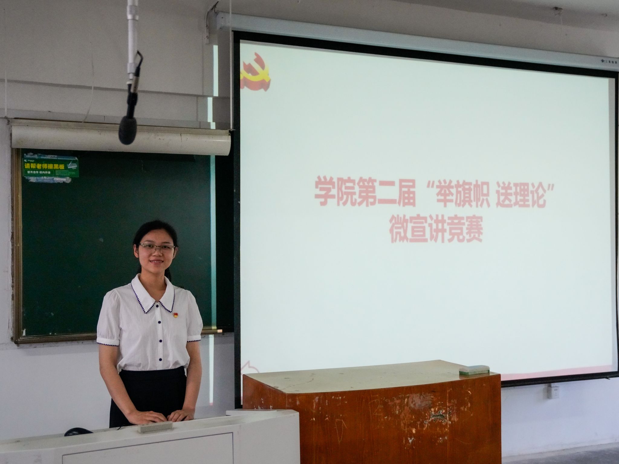 为深入开展学习贯彻习近平新时代中国特色社会主义思想主题教育,加强党的创新理论武装,激励引导学院广大党员、干部在以学铸魂、以学增智、以学正风、以学促干上下功夫见实效,6月8日上午,学院举办第二届“举旗帜·送理论”微宣讲竞赛活动。