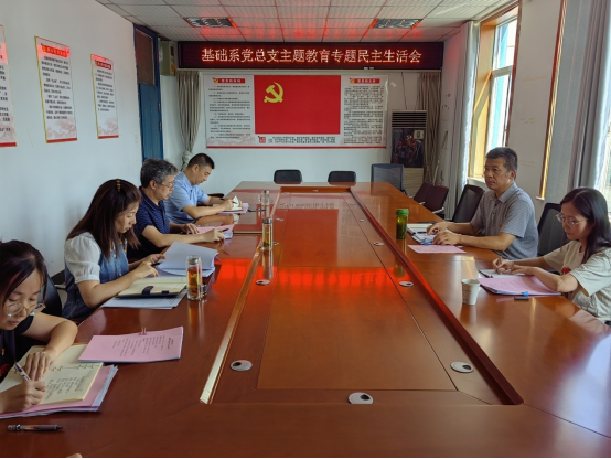 为深入推进学习贯彻习近平新时代中国特色社会主义思想主题教育,坚持不懈用习近平新时代中国特色社会主义思想凝心铸魂,根据院党委统一部署和要求,8月31日下午,基础系党总支召开主题教育专题民主生活会。院党委委员、组织人事处处长龚桢到会指导,系党总支书记邵登泰主持会议,党总支成员参加。