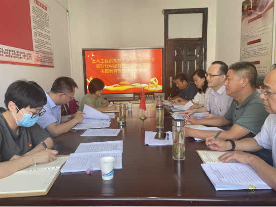 8月31日下午,土木工程系党总支召开学习贯彻习近平新时代中国特色社会主义思想主题教育专题民主生活会。院党委副书记杨菲铃,组织人事处、院纪委相关人员到会指导,系党总支书记邹建华主持会议。