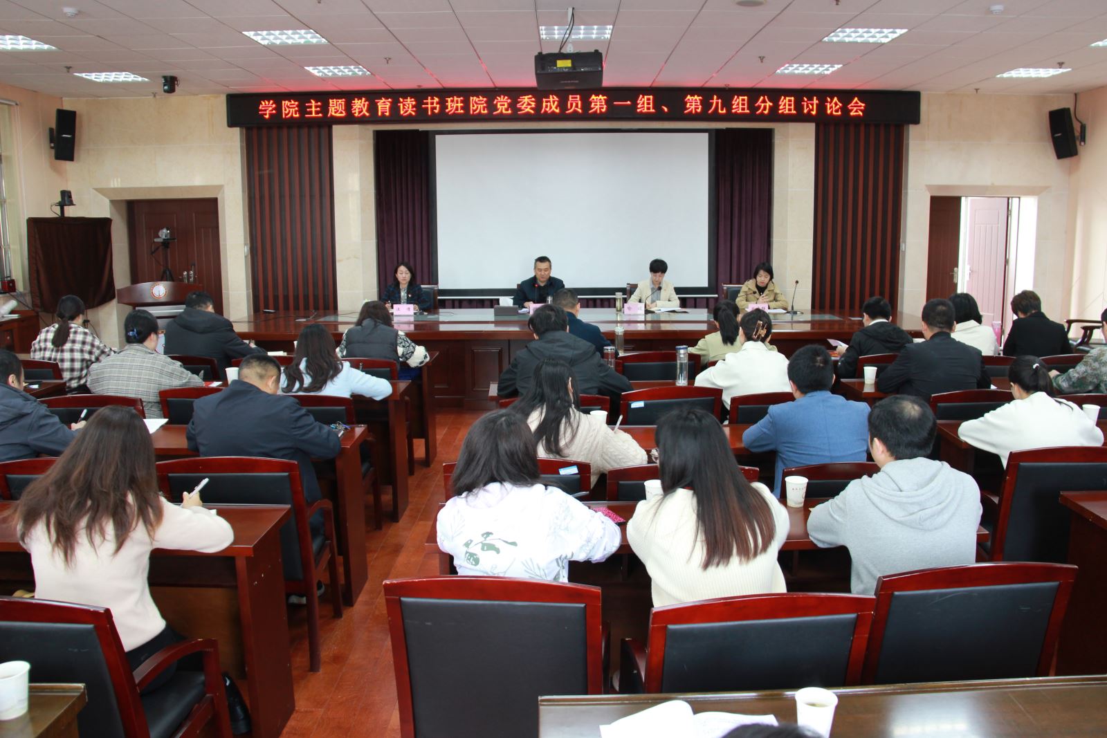 4月26日上午,学院主题教育读书班党委成员第一组、第九组召开分组讨论会。院党委委员、学生处处长喻谨、城信系党总支全体党员、学生处党支部全体党员参会。院党委书记孙顺利主持会议。