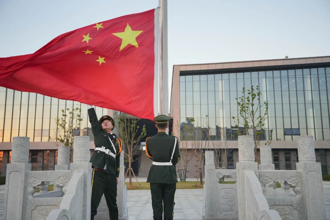 在“宪法晨读”活动期间,国旗护卫队踏着铿锵有力的步伐,护送鲜艳的国旗,坚定的走向升旗台,在晨光初破的黎明,一面鲜艳的五星红旗在众人的瞩目下缓缓升起。