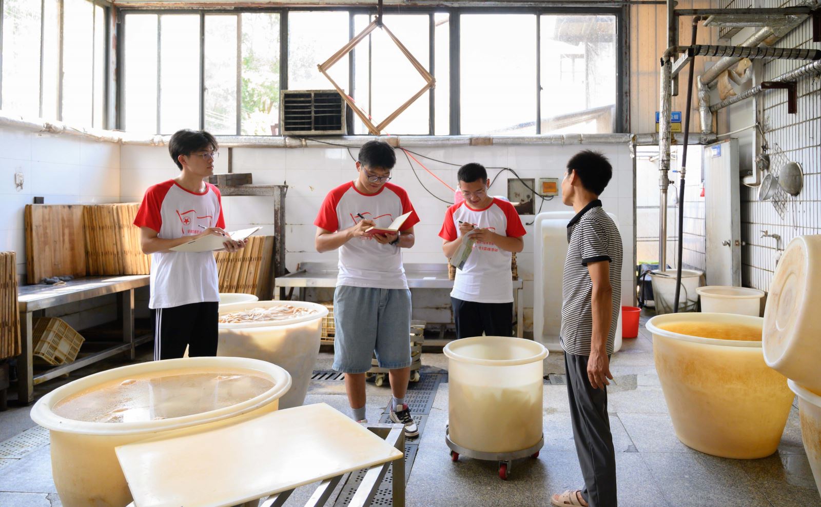团队成员冒着酷暑,顶着烈日第一站前往的是黄山市屯溪区屯光镇南溪南村,该村盛产豆制品,是个千年古村落,具有浓厚的文化底蕴。该村也是社会主义新农村示范村、美丽乡村示范村,全村有10个村民小组。在屯光镇人大主席陈维斌的带领下,团队成员在乡间观察道路变化及环境生态变化,了解当地特色农产品,与当地村民、游客、工作人员及相关负责人深入交流。我们了解到为促进当地产业发展,监督村民日常生活水平,村内设有“红黑榜”,表扬优秀家庭,督促落后家庭。党支部、村委会紧紧围绕"美村、富民、强经济"的要求,对照"全面建成小康社会示范村"的标准,加大投入力度,狠抓软硬件建设,整治村容、村貌,以"生态发展、生活富裕、乡风文明、村容整洁、管理民主"为目标,推进社会主义新农村建设。