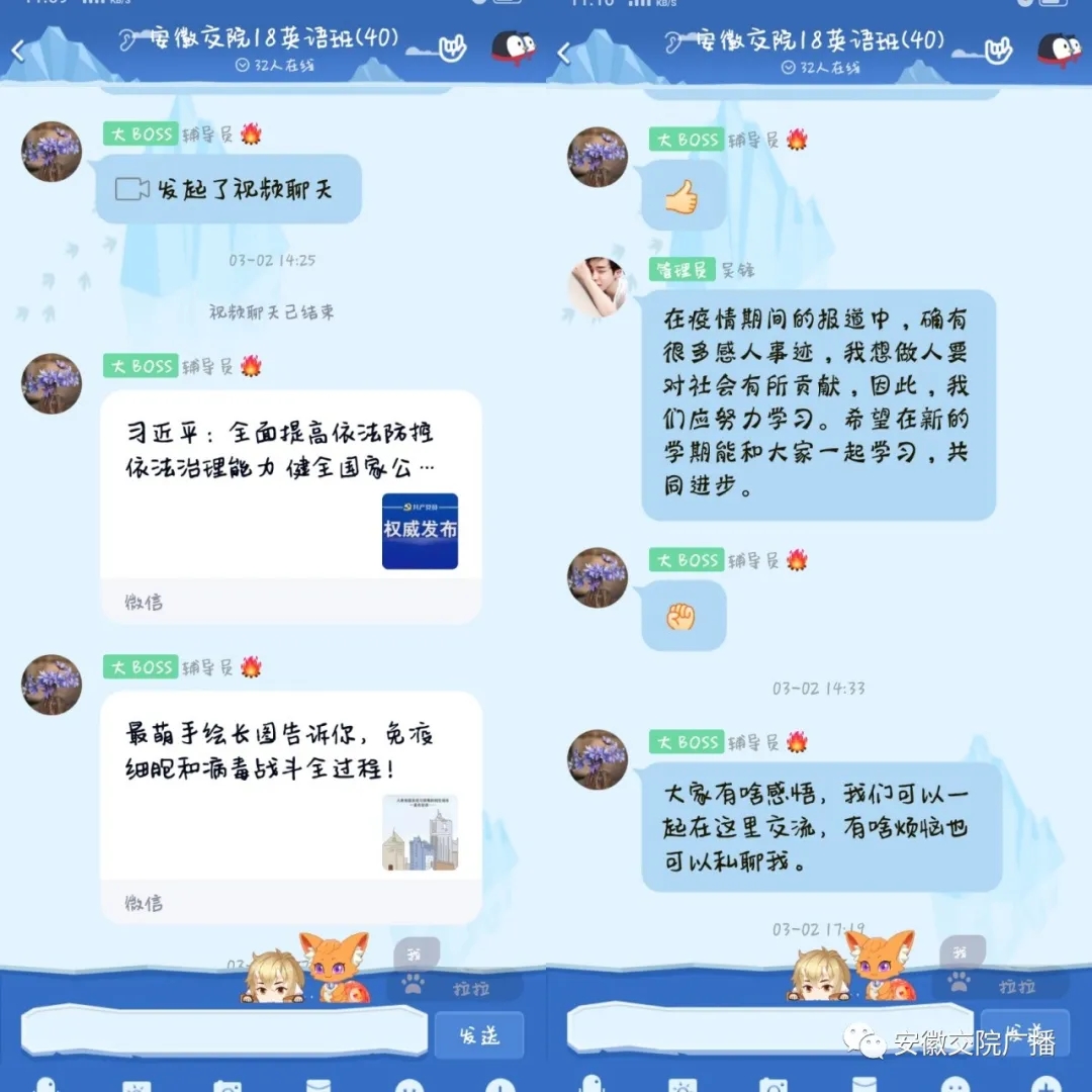 以班级QQ群等线上群组讨论形式开展,向同学们传达了米兰疫情防控的文件精神和工作指示,带领同学们解读防疫形势,学习、宣传防疫知识,疏导不必要的恐慌心理。