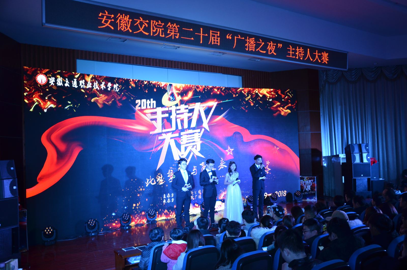 近日,学院第二十届“广播之夜”主持人大赛暨安徽交院广播二十五周年台庆启动仪式在多功能报告厅精彩上演。安徽广播电视台音乐广播总监、主任播音员安妮,安徽广播电视台交通广播《爱车地带》主持人许菲,安徽广播电视台音乐广播《音乐任我行》主持人汤昆,安徽广播电视台公共频道新闻主播袁媛、范仲涛应邀担任评委。