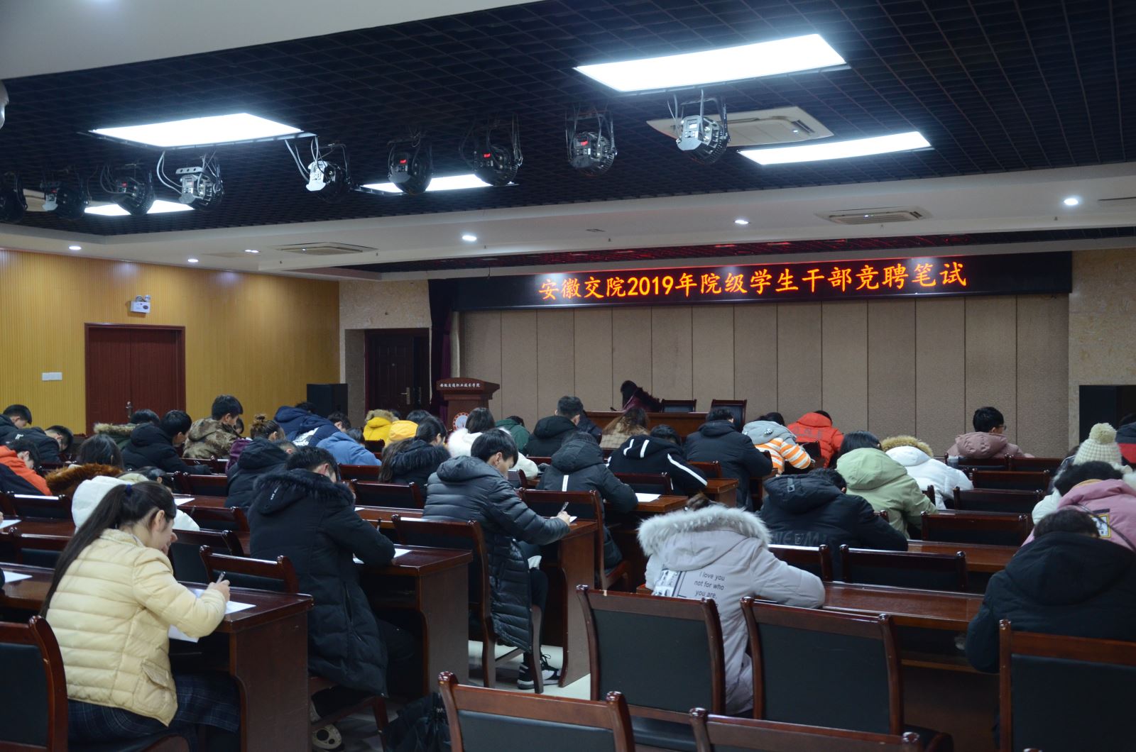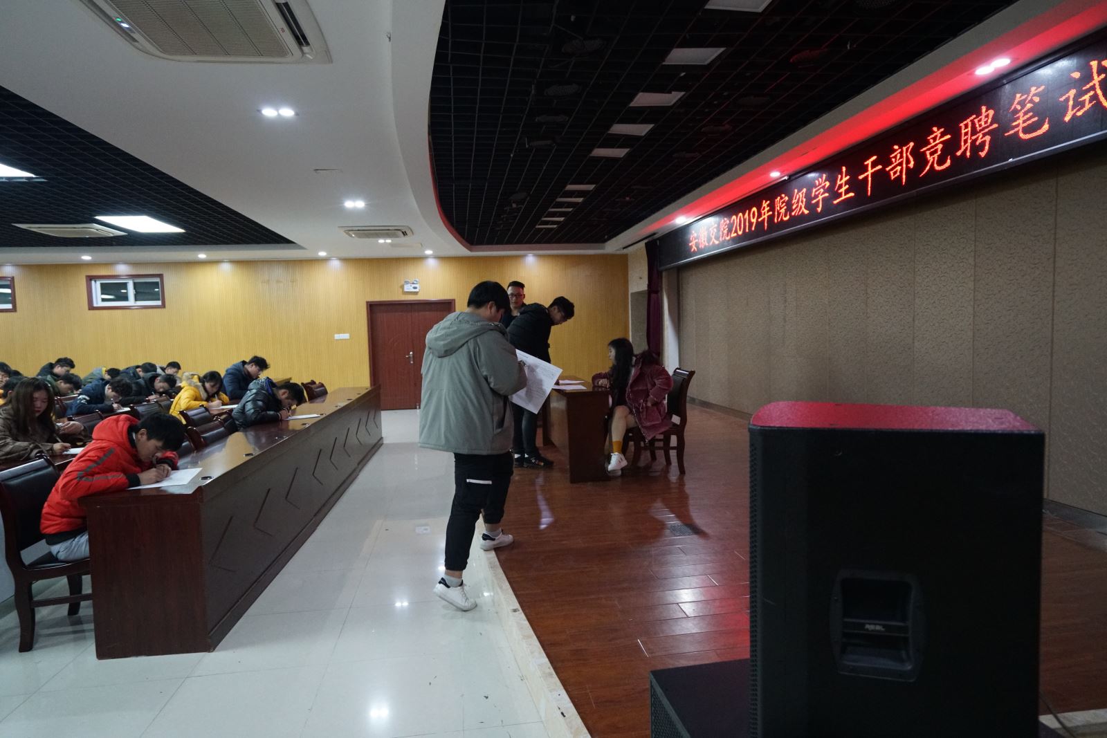12月26日下午,2019年院级学生干部换届笔试在北区学生活动中心举行。