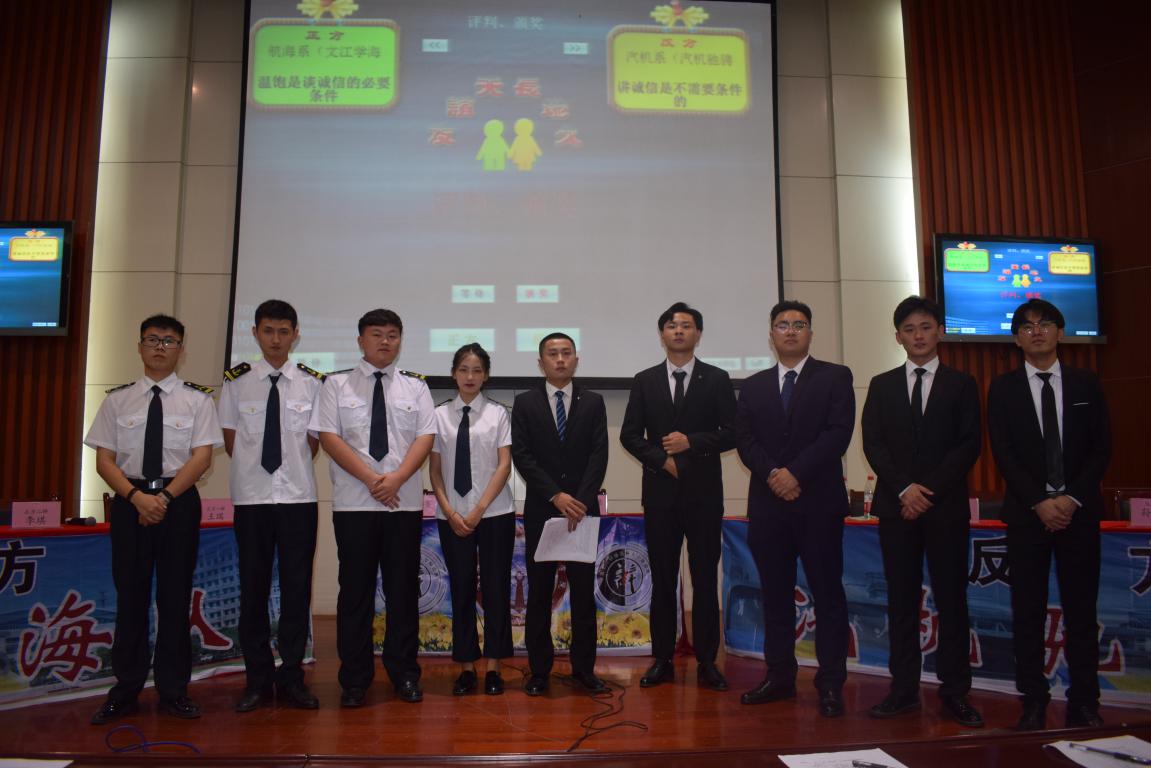 本场比赛的对阵双方正方是航海系“文江学海队”,反方汽机系“汽机驰骋队”。两方围绕“讲诚信是否需要条件”这一辩题展开了激烈的辩论。讲诚信也是中华民族的传统美德、是做人的基本原则。双方准备充分在辩论中也充分突出了自己的观点。经过激烈的角逐,最终来自反方汽机系“汽机驰骋队”获得了本场比赛的胜利,成为本届辩论赛的季军。正方二辩李琪同学和反方四辩方志伟同学虽荣获优秀辩手称号。结束后来自文理科学系副主任、副书记吕中国老师对本场比赛进行了精彩的点评总结,在观众的热烈掌声中,“通达杯”季军争霸赛圆满落幕。