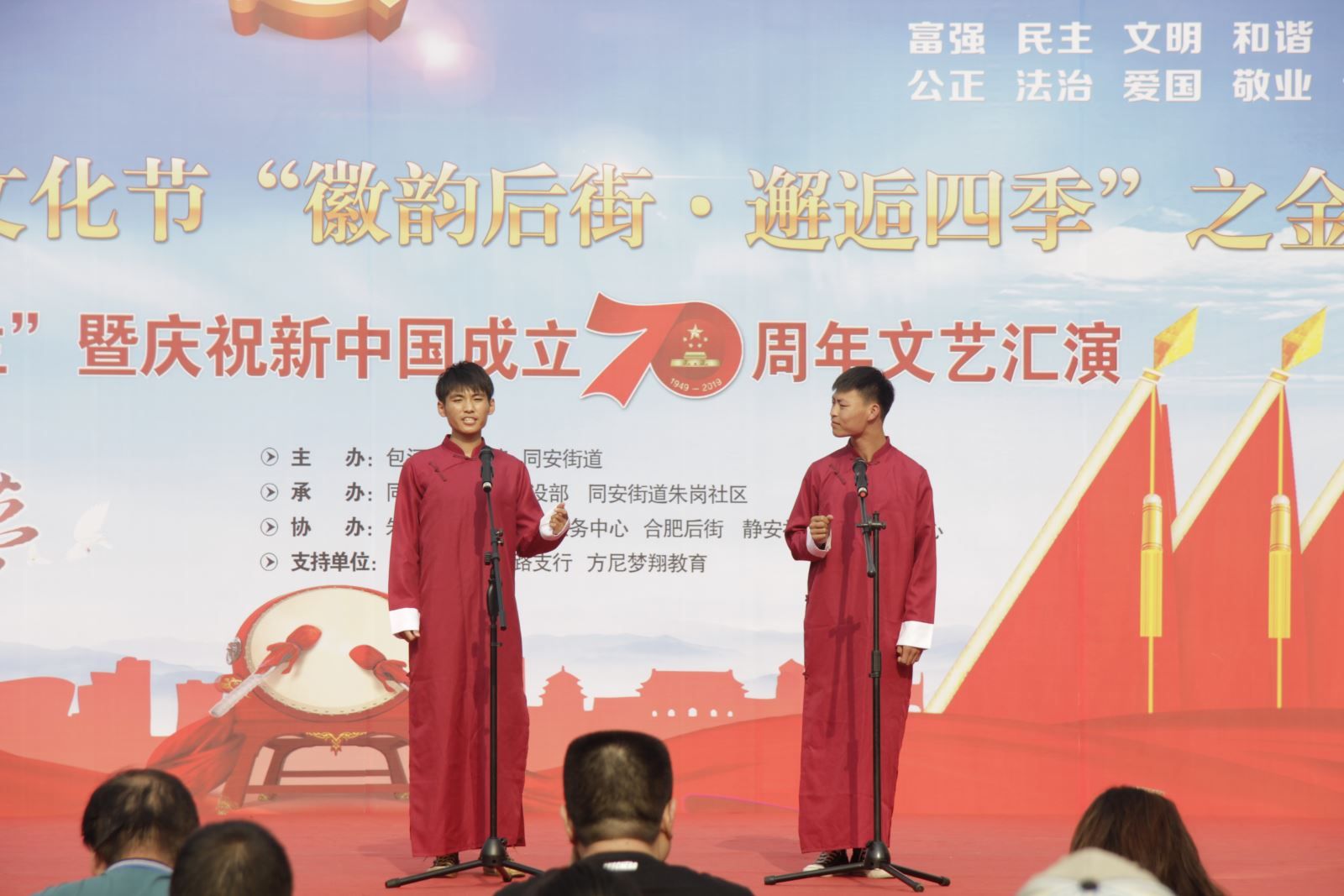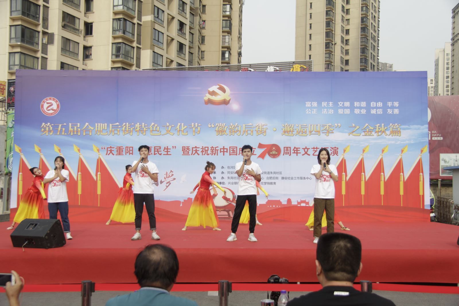 9月24日下午,米兰milan官方网站大学生艺术团应邀参加由朱岗社区举办的“徽韵后街·邂逅四季”金秋篇“庆重阳·惠民生暨新中国成立70周年”特色文化节活动。活动由团委肖虹老师带队,米兰十余名学生出演了其中的两个节目,取得良好效果。