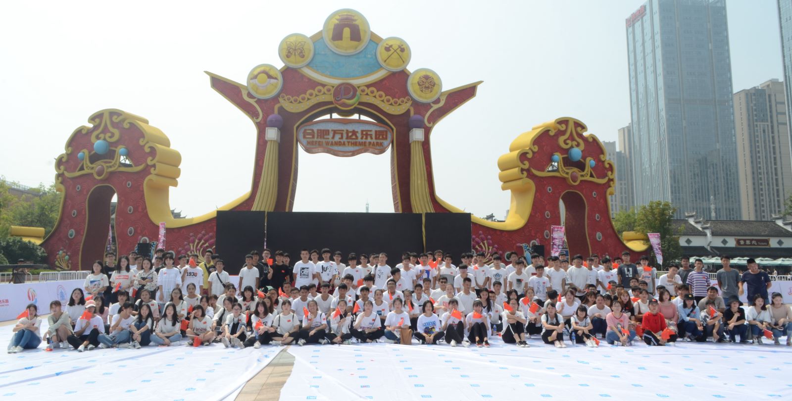 9月15日上午九点半,由合肥广播电视台主办的“四十年一座城百企万人画国旗歌唱祖国”活动在滨湖万年埠街万达乐园的广场举行。本次活动旨在迎接改革开放40周年、庆祝中华人民共和国69岁的生日。