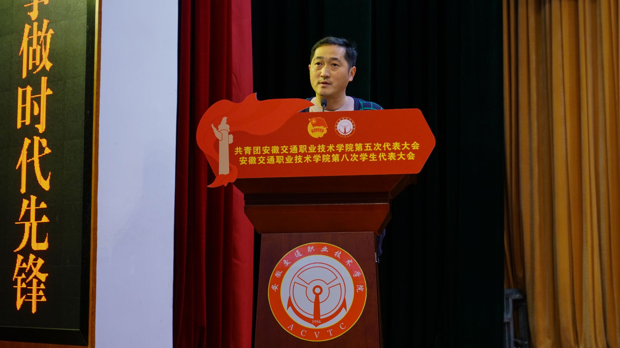 梁文正代表厅团委向大会的召开表示热烈祝贺。他表示,学院各级团学组织在学院党委的坚强领导下,坚持立德树人、主动担当,积极适应共青团深化改革的新形势和新要求,主动贴近青年实际,自觉服务青年成长,在强化政治引领、组织社会实践、推动志愿服务、繁荣校园文化、抓好校园融媒体建设等方面做了大量工作,打造了“通达杯”大专辩论赛、“唱响青春”校园歌手大赛、“悦动青春”大学生趣味运动会、“欢乐青春”笑语联盟喜剧大赛、“广播之夜”主持人大赛、“乡村振兴 梦想课堂”主题志愿服务等一系列特色品牌活动,为省交通运输厅和安徽交院争得了荣誉,贡献了力量。他代表厅团委对学院共青团工作提出了三点希望:一是持续强化思想建设,筑牢理想信念之基;二是继续深化品牌活动,打造特色校园文化;三是不断加强自身建设,永葆清澈纯粹品格。