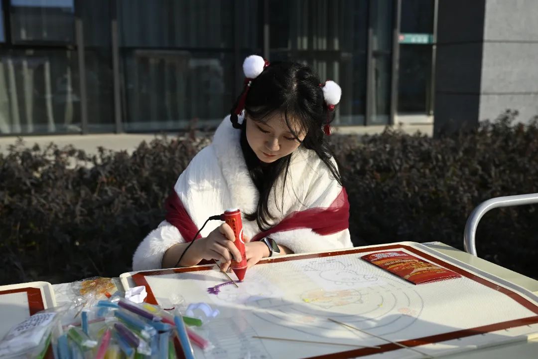 岁序更替之际一场别开生面的活动在新桥暖情启幕一月二日,由院学生处(团委)主办的“交院里的中国年”民俗市集活动为寒冷的冬日校园增添了一抹浓厚的文化色彩。此刻,让我们随着镜头一同回顾市集里的精彩同学们在灯笼上亲手绘画的每一幅图案都寓意着吉祥如意.富有韵味的笔墨书画无论是龙凤呈祥还是莲花盛开都寄托着对美好生活的向往都蕴含着深厚的文化底蕴与美好祝愿。