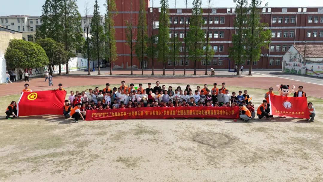 为进一步弘扬“奉献、友爱、互助、进步”的志愿精神,持续将“我为群众办实事”实践活动走深走实,进一步凝聚青春正能量,助力皖北乡村振兴,4月18日,由省交通运输厅团委主办、米兰milan官方网站团委承办、濉溪团县委协办的“为民办实事 点亮微心愿”暨“乡村振兴 梦想课堂”主题志愿服务一行来到了淮北市濉溪县双堆中心小学。20余名青年党团员参加了此次活动。