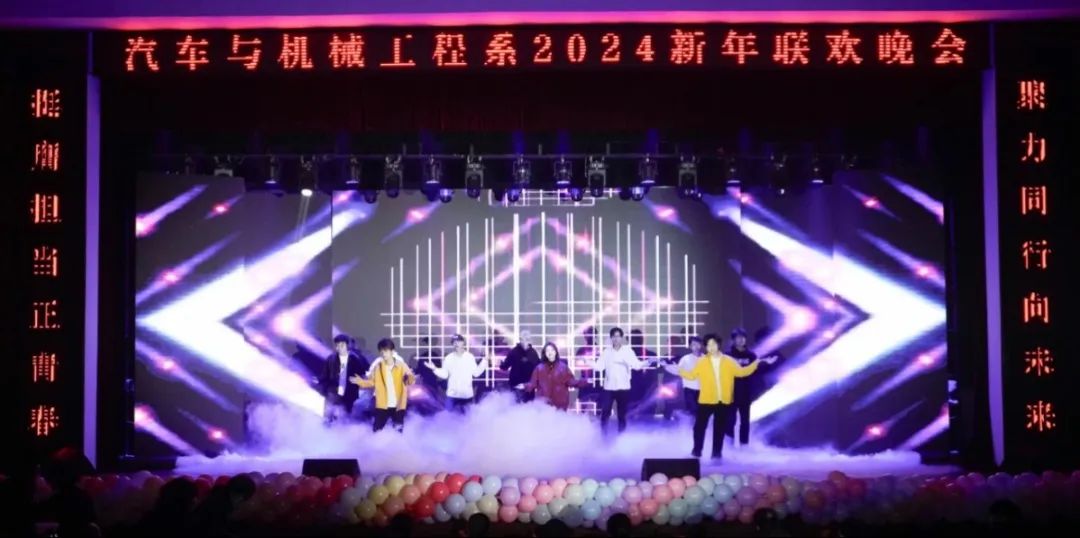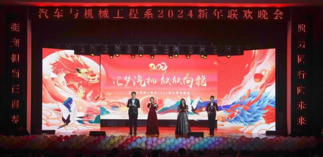 龙伴祥运随岁至,燕偕福气送春来。1月3日晚,汽车与机械工程系“汇梦汽机 欣欣向龍”2024新年联欢晚会在南区大礼堂隆重举办。院党委委员、副院长韦兵,院党委委员、纪委书记季传友,院党委委员、汽车与机械工程系主任梁洪波,汽车与机械工程系党总支书记沈劲松,学生处副处长、院团委书记刘元元,系其他领导班子成员以及广大师生齐聚一堂,共同欢度新年。