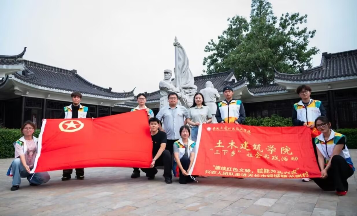 “民族要复兴,乡村必振兴;乡村要振兴,文化必先行。”在中国人民抗日战争暨世界反法西斯战争胜利80周年之际,为深入学习贯彻党的二十大精神和习近平总书记关于“用好红色资源、讲好红色故事、搞好红色教育”的重要指示,米兰milan官方网站土木建筑学院“兴农人”社会实践团队在学院团组织负责人武庆媛和检测与养护教研室党支部委员武余波的带领下,于7月15至16日赴滁州天长市铜城镇国家历史文化名村龙岗,开展以“赓续红色文脉,赋能芡实兴农”为主题的暑期“三下乡”实践活动。团队紧扣“红色文化”与“特色产业”双主线,通过对话抗战老兵、探访红色旧址、深耕芡实产业,在红土地上书写青春答卷,让红色精神与振兴实践同频共振。