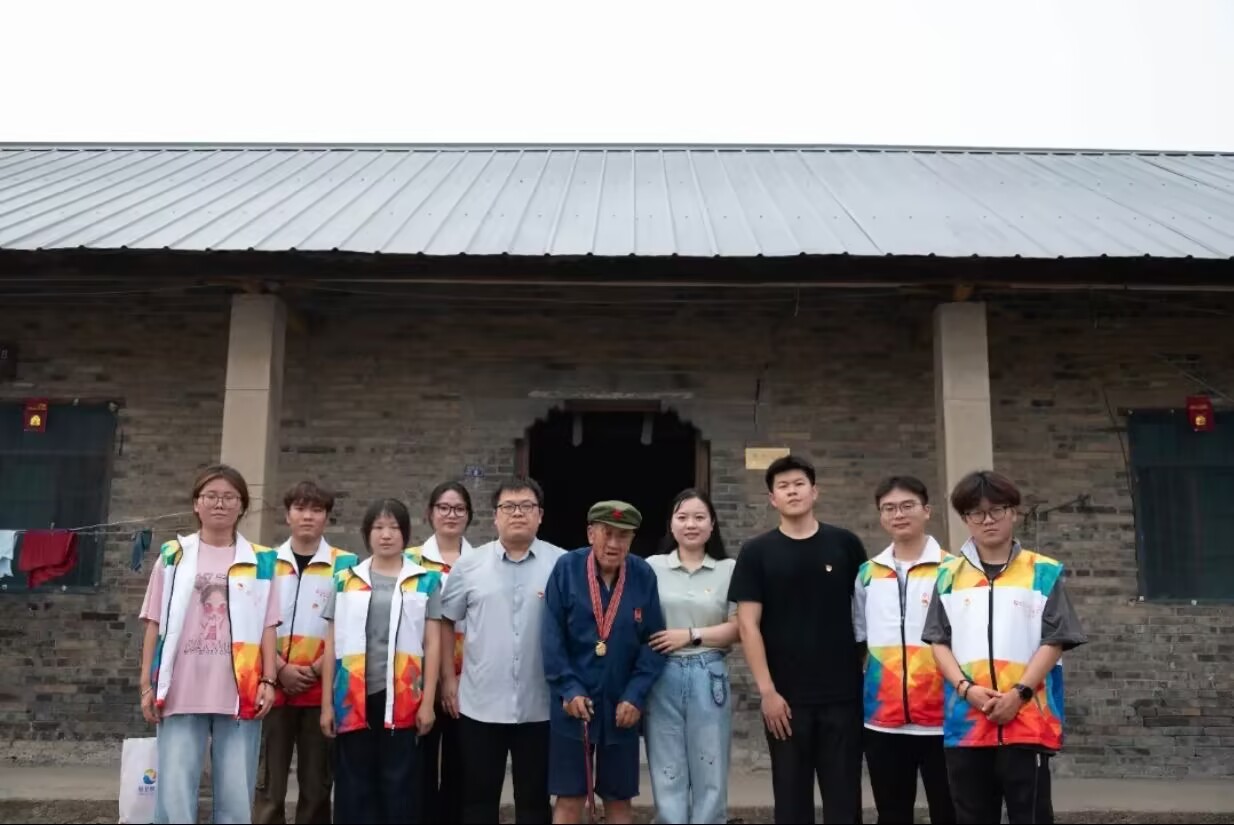 15日上午,团队首站走进90岁抗日老兵、抗美援朝老兵魏汉章的家中。时光虽悄悄磨钝了老人的言语,但那顶老式军帽上熠熠生辉的五角星,那段烽火岁月的记忆仿佛穿越时空,与新时代青年展开了一场无声却震撼的精神对话。团队成员围坐聆听,仔细记录家属口中的峥嵘往事,将这段承载民族魂魄的红色记忆悉心珍藏。老兵的故事从不是泛黄的历史注脚,而是始终照亮现实的“精神灯塔”——它让“赓续红色文脉”走出标语,化作可触碰的温度、可传承的力量。这次特殊的走访不仅为青年学子上了一堂生动的爱国主义教育课,更在乡村振兴的伟大实践中注入了强大的精神动力,让红色基因在新时代焕发新的光芒。