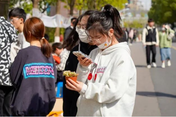 “绿植兑换”志愿服务活动。志愿者们在食堂门口面向全体学院学生开展绿植兑换活动 。