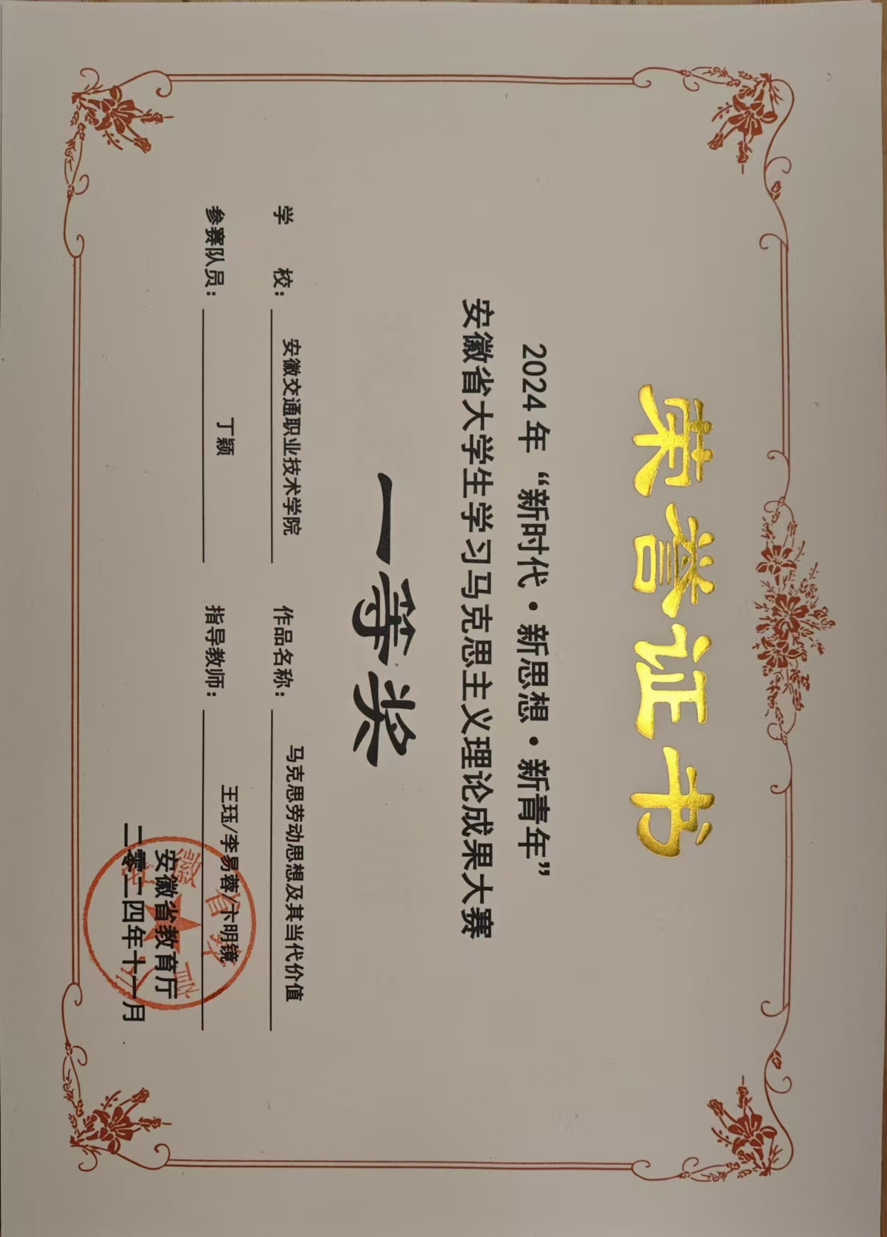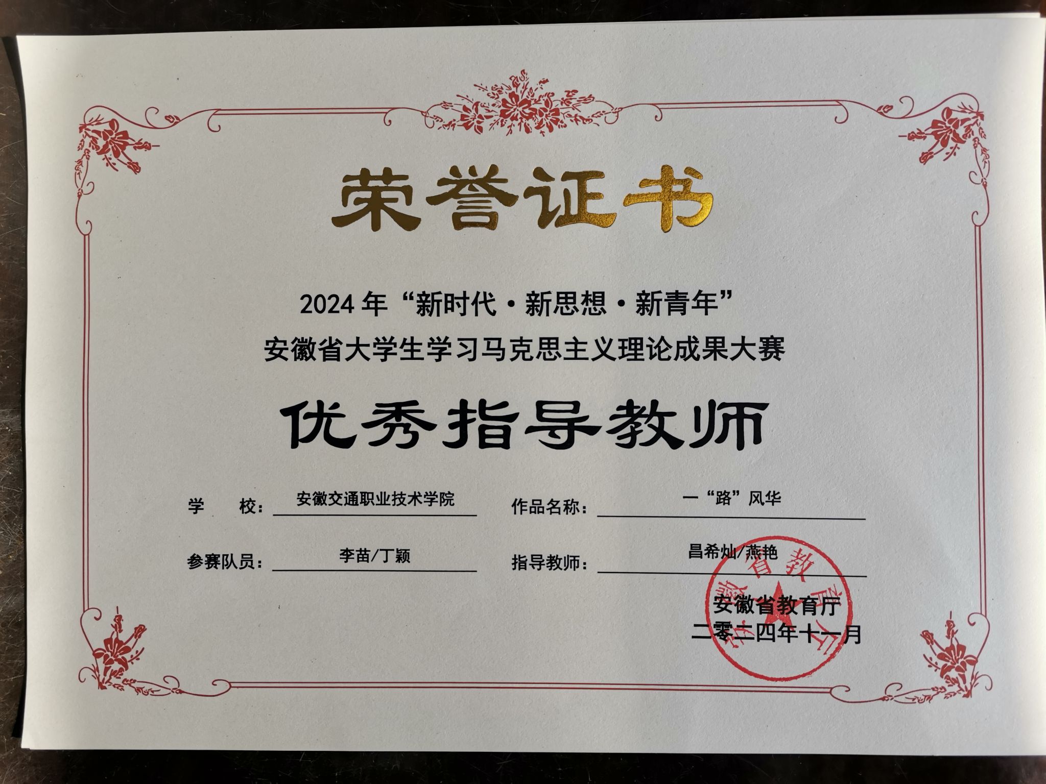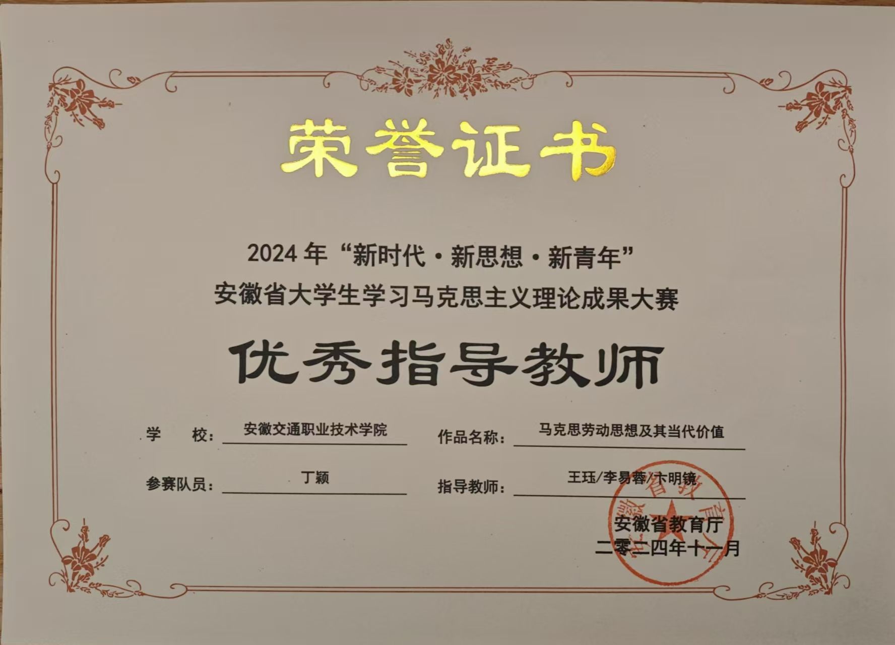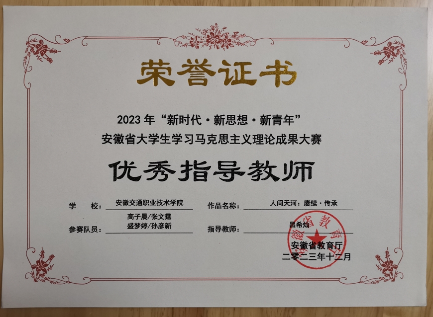 自比赛通知发布后,文理科学系高度重视,精心选题、认真打磨,选送的2件作品在全省高校提交的185项参赛作品中脱颖而出。其中,昌希灿、燕艳两位老师指导的微视频作品《一“路”风华》获得该类别一等奖第一名,王珏、李易蓉、卞明镜三位老师指导的论文作品《马克思劳动思想及其当代价值》获该类别一等奖,五位老师均获得“优秀指导教师”称号,李苗、丁颖两位同学获奖。
