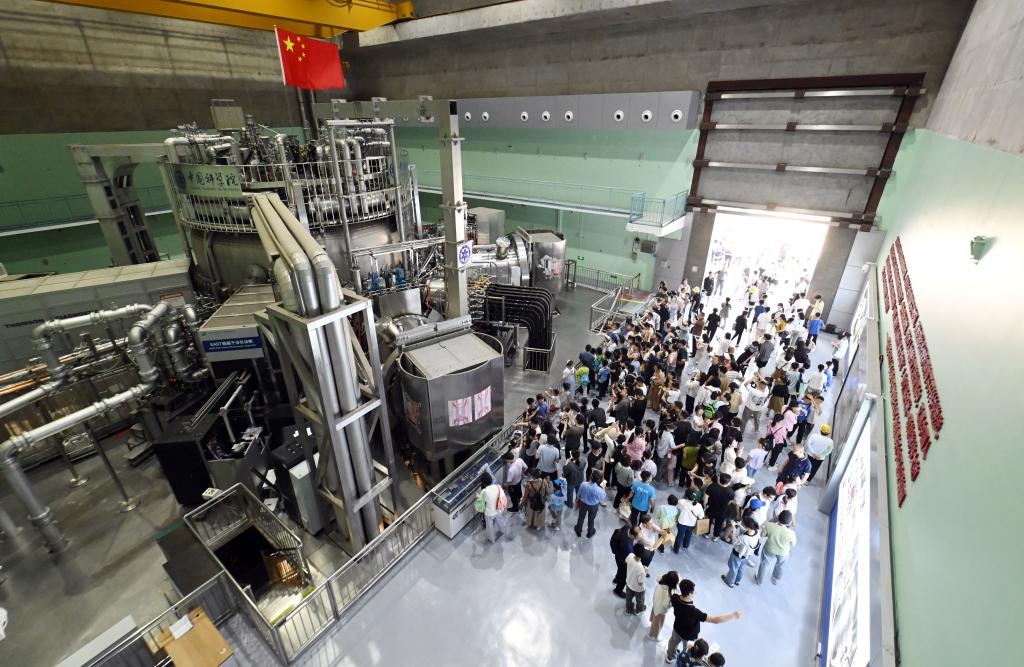 在中国科学院合肥物质科学研究院等离子体物理研究所,市民参观全超导托卡马克核聚变实验装置(EAST)。新华社记者 周牧 摄