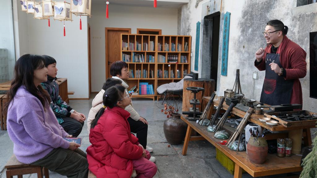 “‘读万卷书,行万里路’,这句话不仅是孩子们的向往,也是我们大人的向往。”来自上海的42岁游客孙伟华说。这个寒假,他和妻子带着上小学的孩子来到皖南黄山黟县,入住一家以徽墨非遗技艺体验为主题的民宿,在游玩之外还参与体验课程,听制墨手艺人讲述华夏文脉背后的故事,亲手尝试制墨古法。