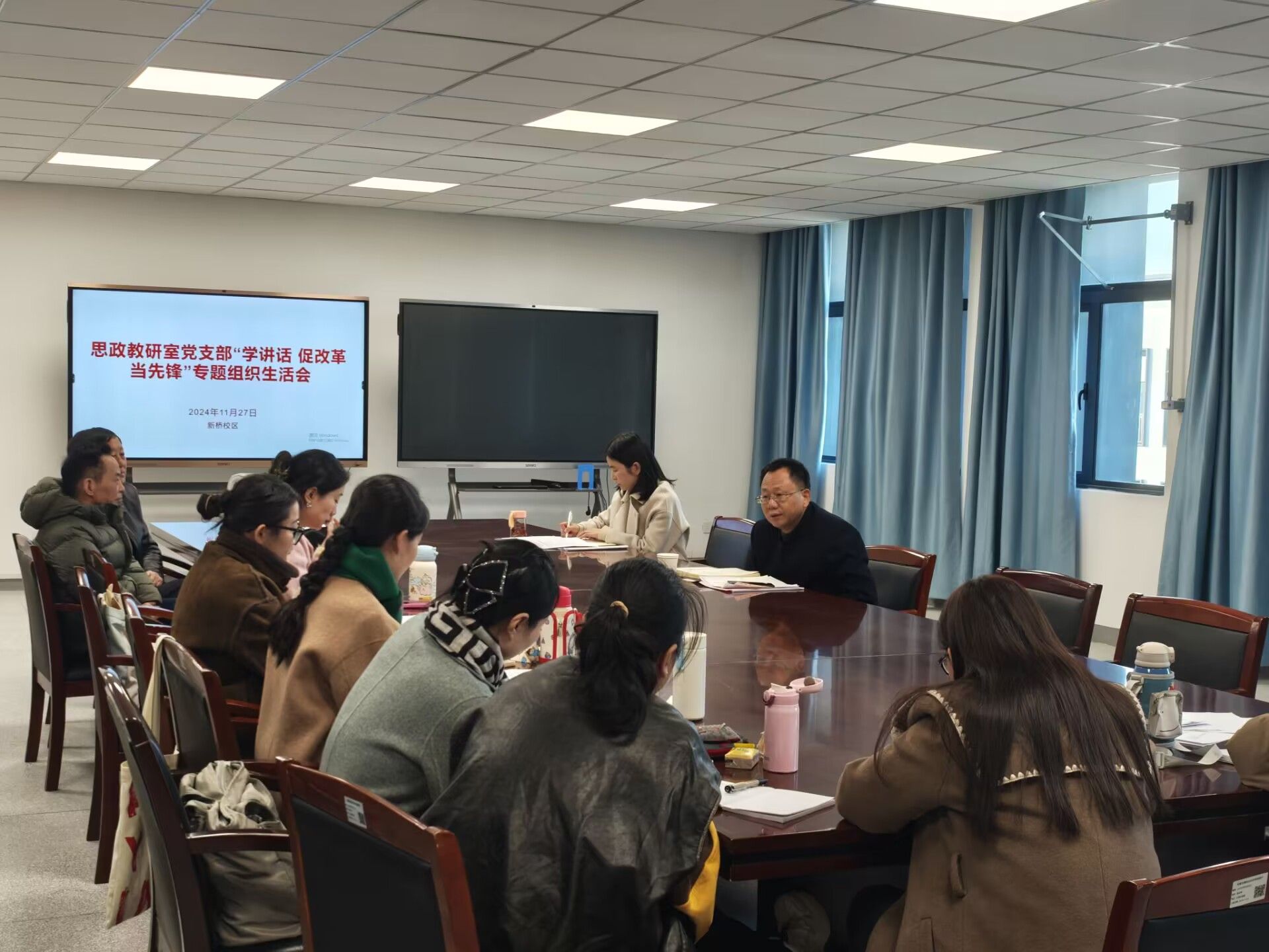 为进一步贯彻落实《中共安徽省直属机关工作委员会关于开展“学讲话 促改革 当先锋”主题实践活动的方案》文件精神,11月27日下午,文理科学系思政教研室党支部组织召开专题组织生活会。院党委书记杨菲铃莅临指导,文理系思政教研室党支部全体党员参会,会议由思政教研室党支部书记燕艳主持。