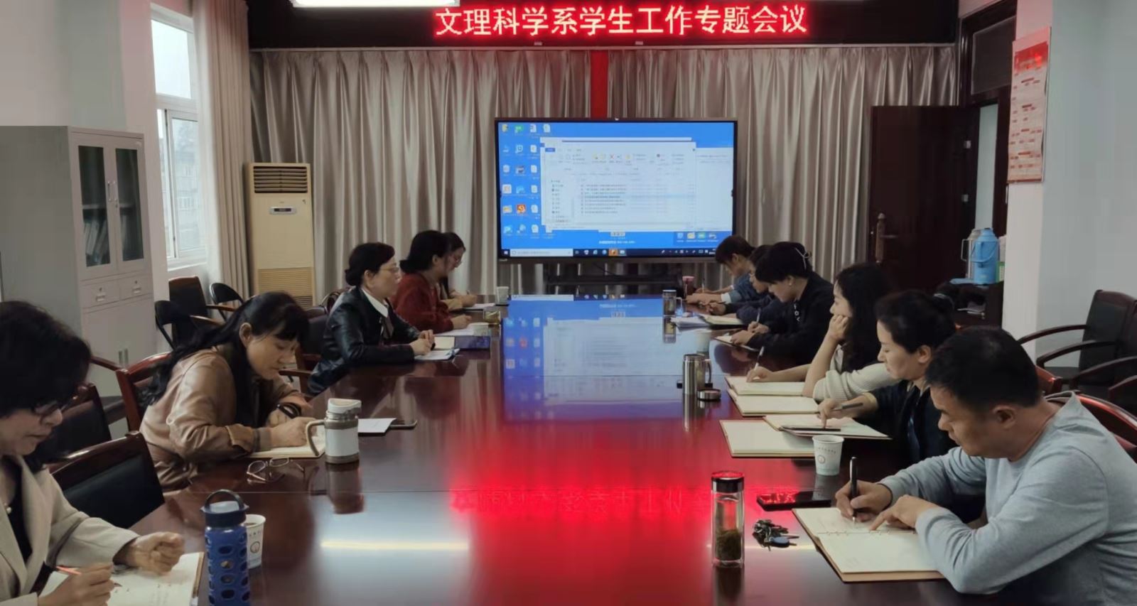 为进一步做好文理系学生管理服务及教学工作,10月15日下午,文理系先后召开学生工作、教学工作专题会议,系党总支副书记、副主任(全面主持工作)昌希灿,系党总支副书记、副主任王珏,系副主任王华红出席会议,系办相关工作人员参加会议。会议由昌希灿主持。
